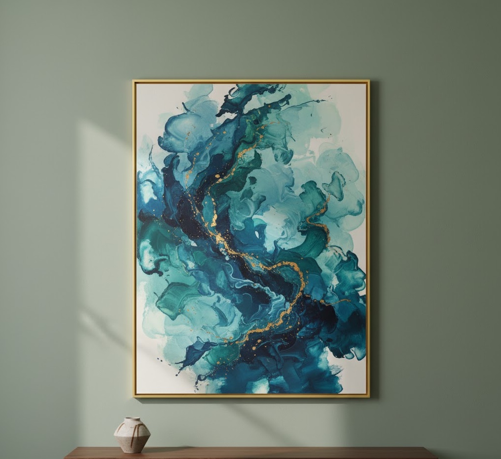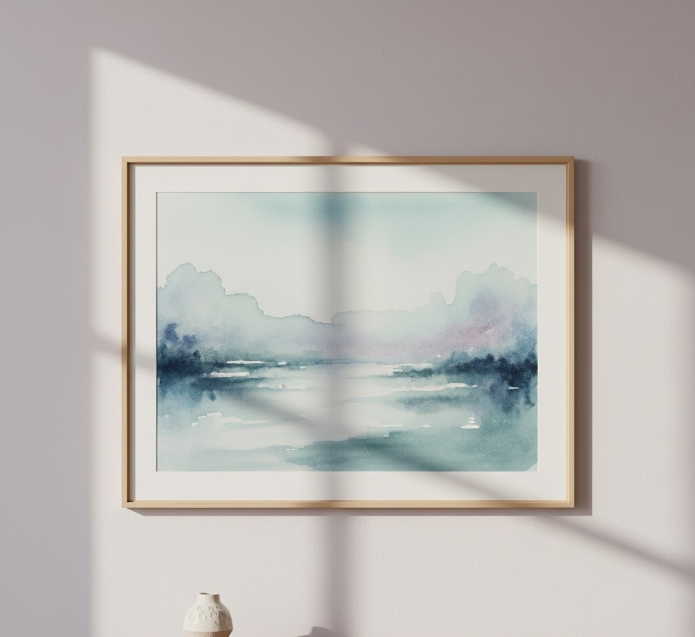 Introduce a delicate and ethereal touch with watercolour bedroom art, known for its soft washes and translucent qualities. This style often features landscapes, botanical illustrations, abstract forms, or gentle portraits rendered in watercolour, creating a dreamy and serene effect. Materials are typically high-quality paper, often framed simply to let the art speak for itself. The colour palette is usually soft, muted, and blended, with subtle transitions, fostering a calm, gentle, and artistic mood. It adds a sophisticated yet understated elegance to the bedroom.
