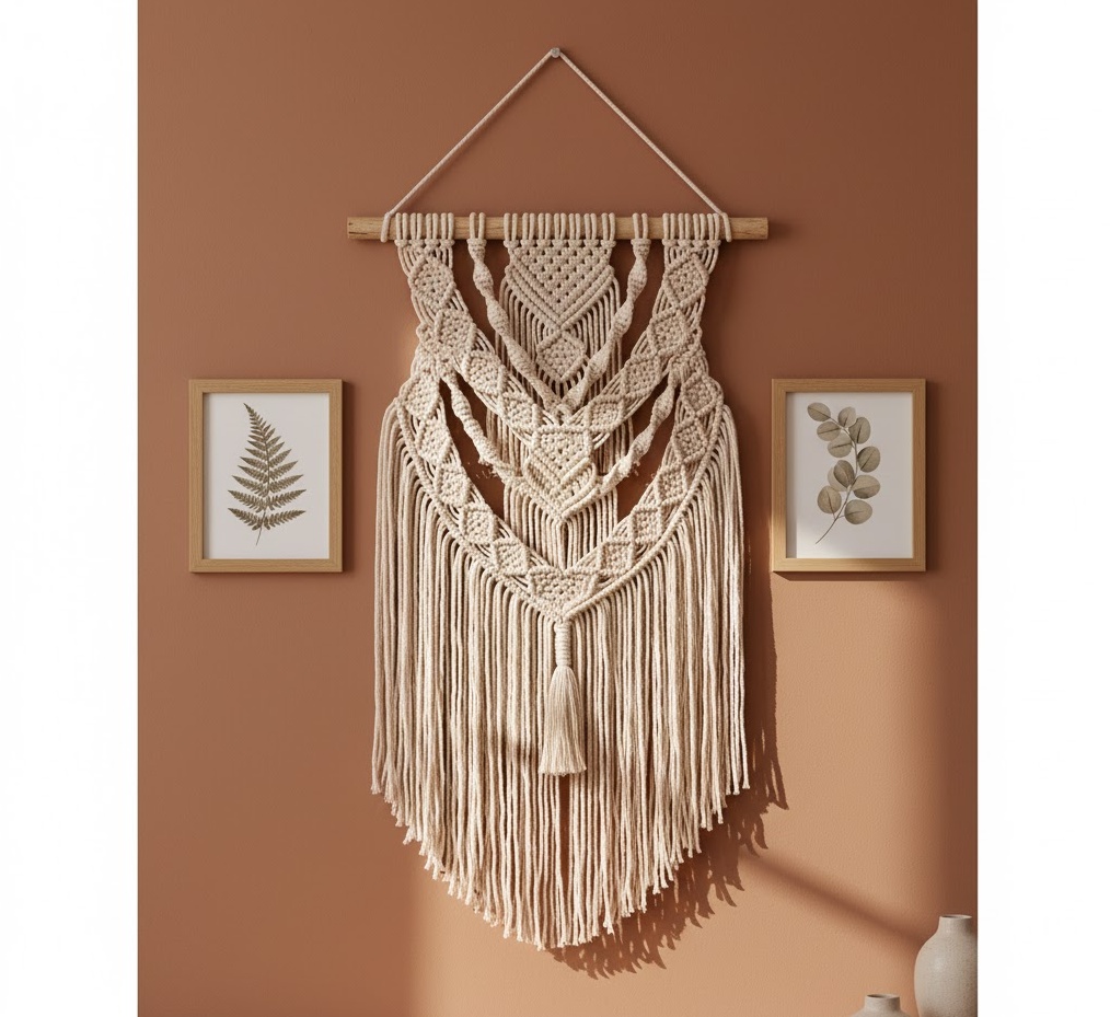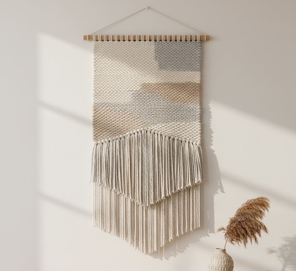 Introduce softness, texture, and warmth with fabric wall hangings bedroom decor, offering a unique alternative to traditional framed art. This style encompasses a variety of textile arts, including tapestries, quilted pieces, embroidered panels, or woven art. Materials range from wool and cotton to silk and linen, often featuring intricate patterns, abstract designs, or scenic motifs. The colour palette can be rich and vibrant or muted and earthy, contributing to a cosy, inviting, and tactile mood. Functionally, they can also help with acoustics, absorbing sound in the room.