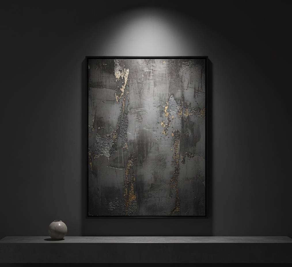 Infuse your sleeping space with urban edge and raw appeal using industrial bedroom wall art, celebrating utilitarian design. This style often features exposed metal elements, abstract art with concrete textures, vintage factory signs, or architectural blueprints. Materials typically include raw steel, reclaimed wood, concrete, and distressed metals. The colour palette is often monochromatic, with greys, blacks, whites, and earthy tones, creating a strong, masculine, and functional mood. It embraces imperfections and celebrates the beauty of raw, unfinished materials.