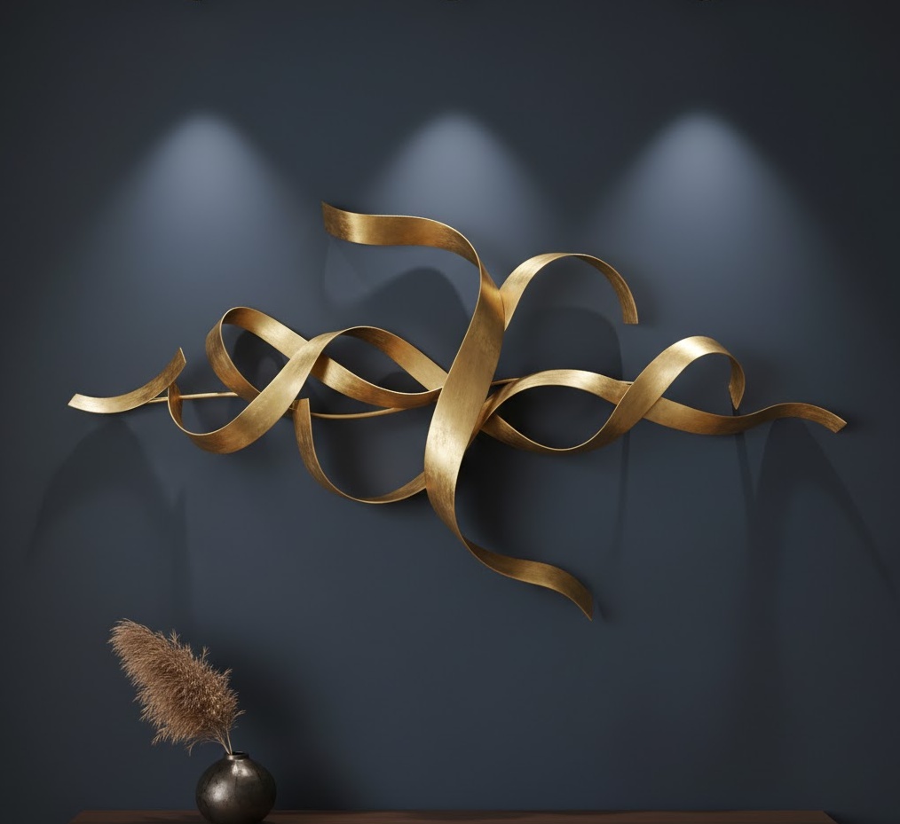 Add a touch of glamour and contemporary sophistication with metallic bedroom wall art, reflecting light and creating visual interest. This style incorporates elements made from or featuring metallic finishes like gold, silver, copper, or rose gold. Think abstract metal sculptures, framed prints with metallic accents, or polished metal panels. Materials include aluminium, brass, steel, or prints with foil detailing. The colour palette often combines metallics with deep jewel tones or stark neutrals, creating a luxurious and modern mood. It adds a chic, reflective quality that can brighten and elevate the space.