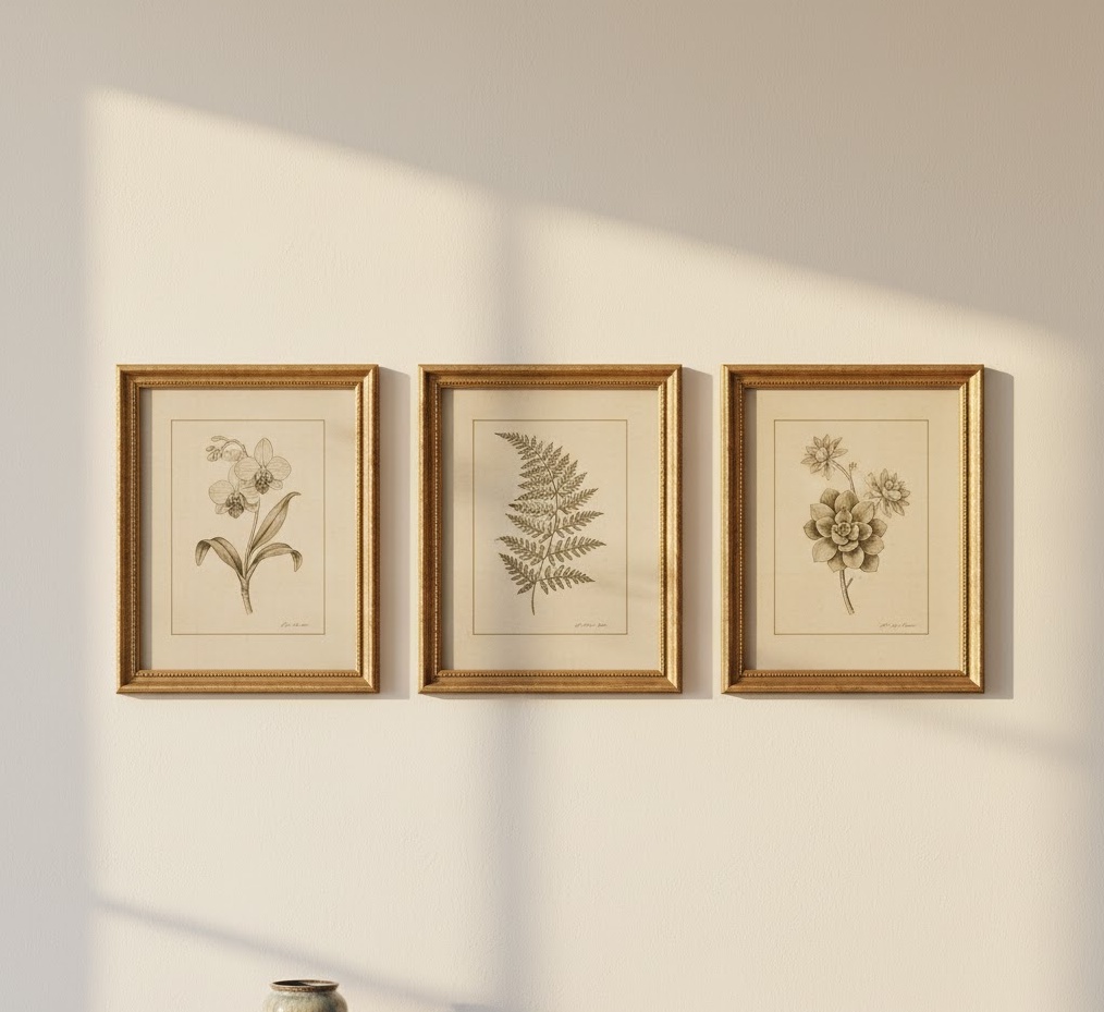 Evoke a sense of nostalgia and timeless elegance with vintage bedroom wall art, drawing inspiration from past eras. This style often includes antique maps, botanical illustrations, old advertisements, or classic portraiture, offering a rich historical narrative. Materials typically involve aged paper, distressed frames, or canvas prints with a sepia tone. The colour palette leans towards muted, faded hues, creams, and deep, rich tones, creating a warm and inviting mood with a story to tell. It adds character and a unique, curated feel to any bedroom.