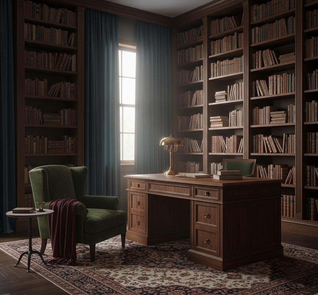 This cottagecore aesthetic room marries the intellectual depth of dark academia with rustic charm, creating a sophisticated yet cosy study or library. Rich, dark wood furniture, leather-bound books, and antique globes are central, evoking a sense of history and scholarly pursuit. The colour palette is deep and moody, featuring forest greens, burgundy, deep blues, and warm browns, fostering an atmosphere of quiet contemplation. Functionality is key, with ample shelving for books, a sturdy writing desk, and comfortable seating for long hours of reading or research. It’s a space that feels both learned and deeply comforting, perfect for intellectual pursuits in a homely setting.