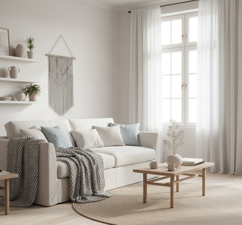 This cottagecore aesthetic room merges the clean lines and natural simplicity of Nordic design with the warmth of cottagecore, creating a bright and serene space. Light wood furniture, natural fibres like wool and linen, and minimalist decor are key, fostering a calm and uncluttered environment. The colour palette is typically muted and earthy, featuring crisp whites, greys, pale blues, and natural wood tones, evoking a sense of peaceful harmony. Functionality is paramount, with practical, well-designed pieces that maximise light and space, such as a simple wooden bench or a cosy sheepskin throw. It’s a style that feels both fresh and deeply comforting, celebrating natural light and understated beauty.
