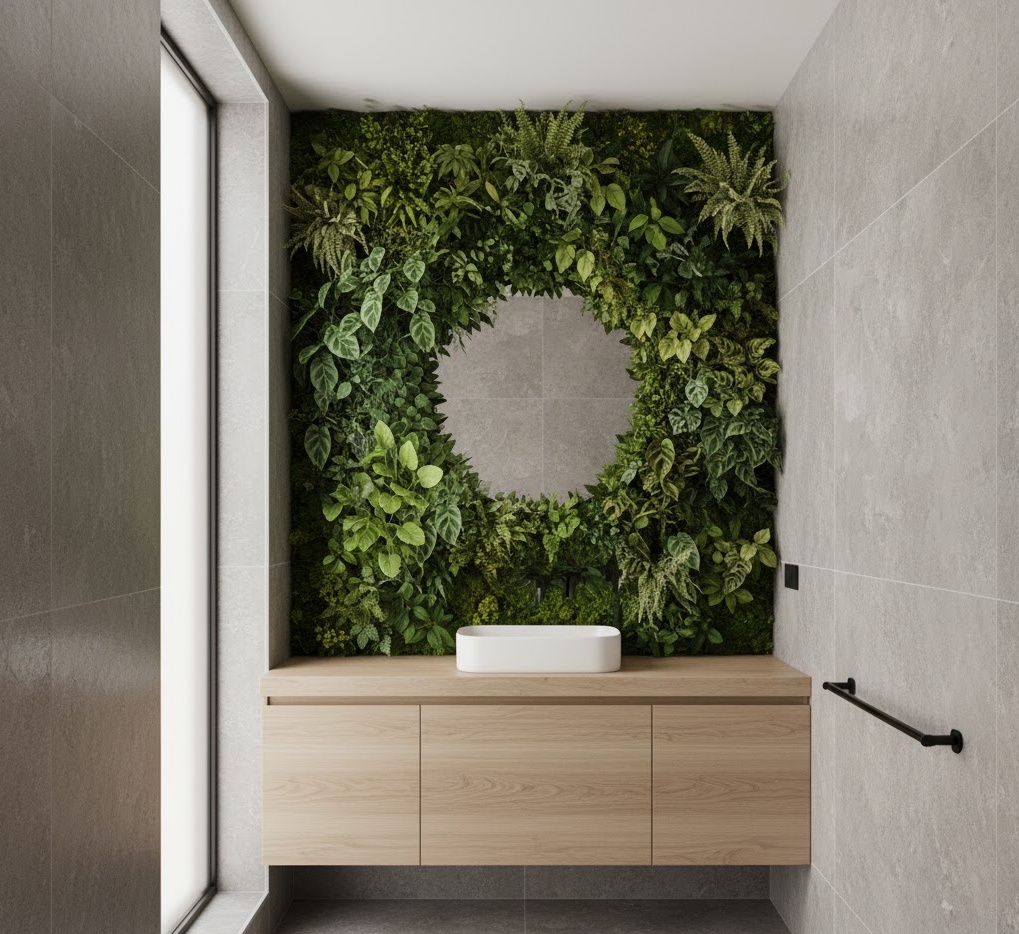 16. Biophilic Apartment Bathroom Design