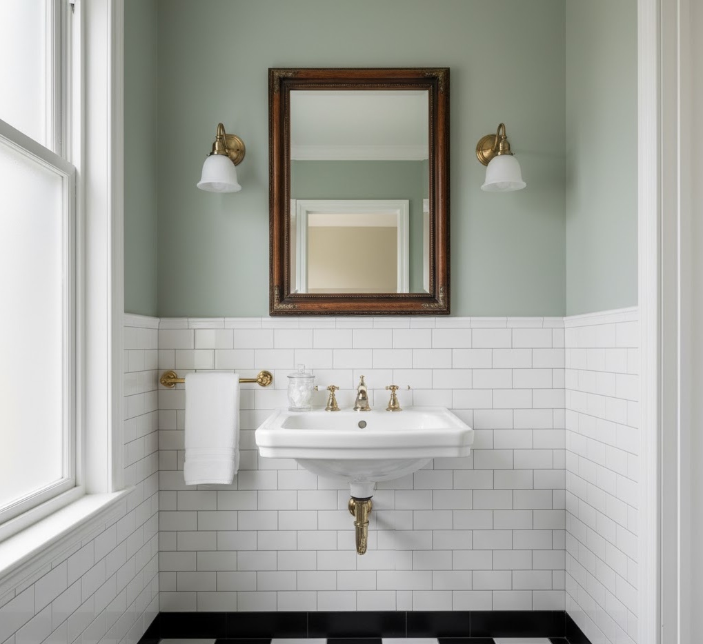 Evoke nostalgic charm with a vintage inspired apartment bathroom, blending classic aesthetics with modern functionality. This style often incorporates elements from different eras, such as Victorian, Edwardian, or mid-century, creating a unique and characterful space. Think clawfoot tubs (if space allows, or a vintage-style shower), traditional fixtures, and period-appropriate tiles. A palette of soft pastels, creams, or classic black and white works beautifully. Functionality is achieved by selecting compact vintage-style pieces and clever storage that complements the era. The mood is charming and timeless, offering delightful small bathroom ideas for apartments that tell a story.