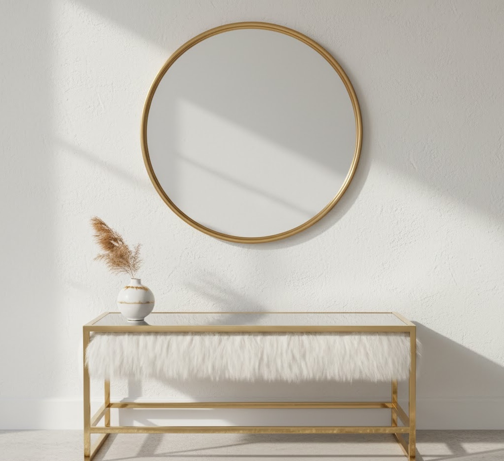 A glamorous entryway bench statement transforms your foyer into a luxurious and dazzling space, exuding opulence and high-end sophistication. This style is characterised by reflective surfaces, metallic accents, and plush, tactile fabrics that catch the light. Materials often include mirrored finishes, polished brass or chrome, and sumptuous upholstery like faux fur, velvet, or high-gloss leather. The colour palette is typically rich and bold, featuring jewel tones, metallics, and deep blacks or whites, creating an undeniably lavish mood. Functionally, it serves as a stunning focal point, offering a chic spot to pause. This entryway bench idea is perfect for those seeking to make a dramatic and fashionable first impression.