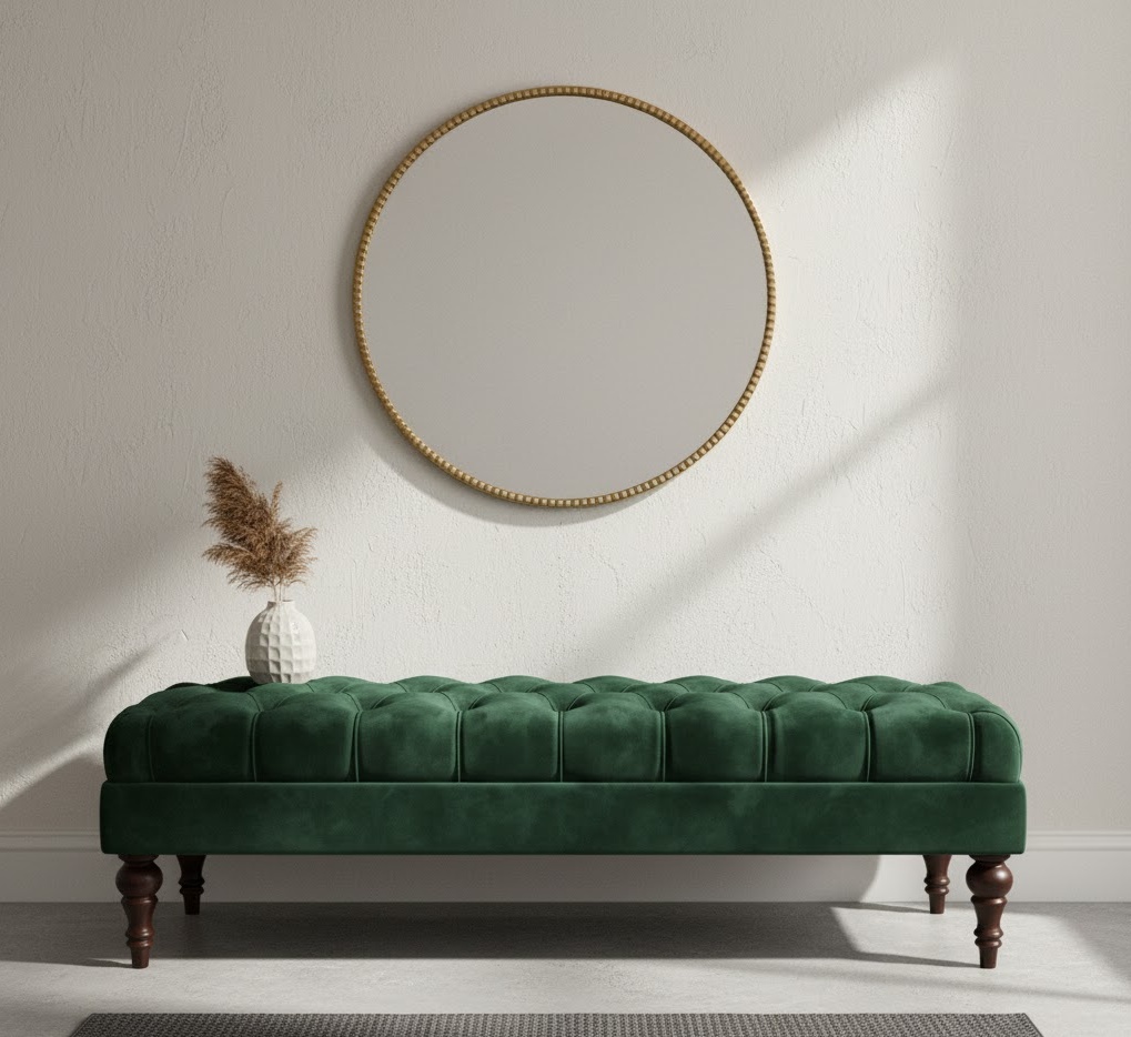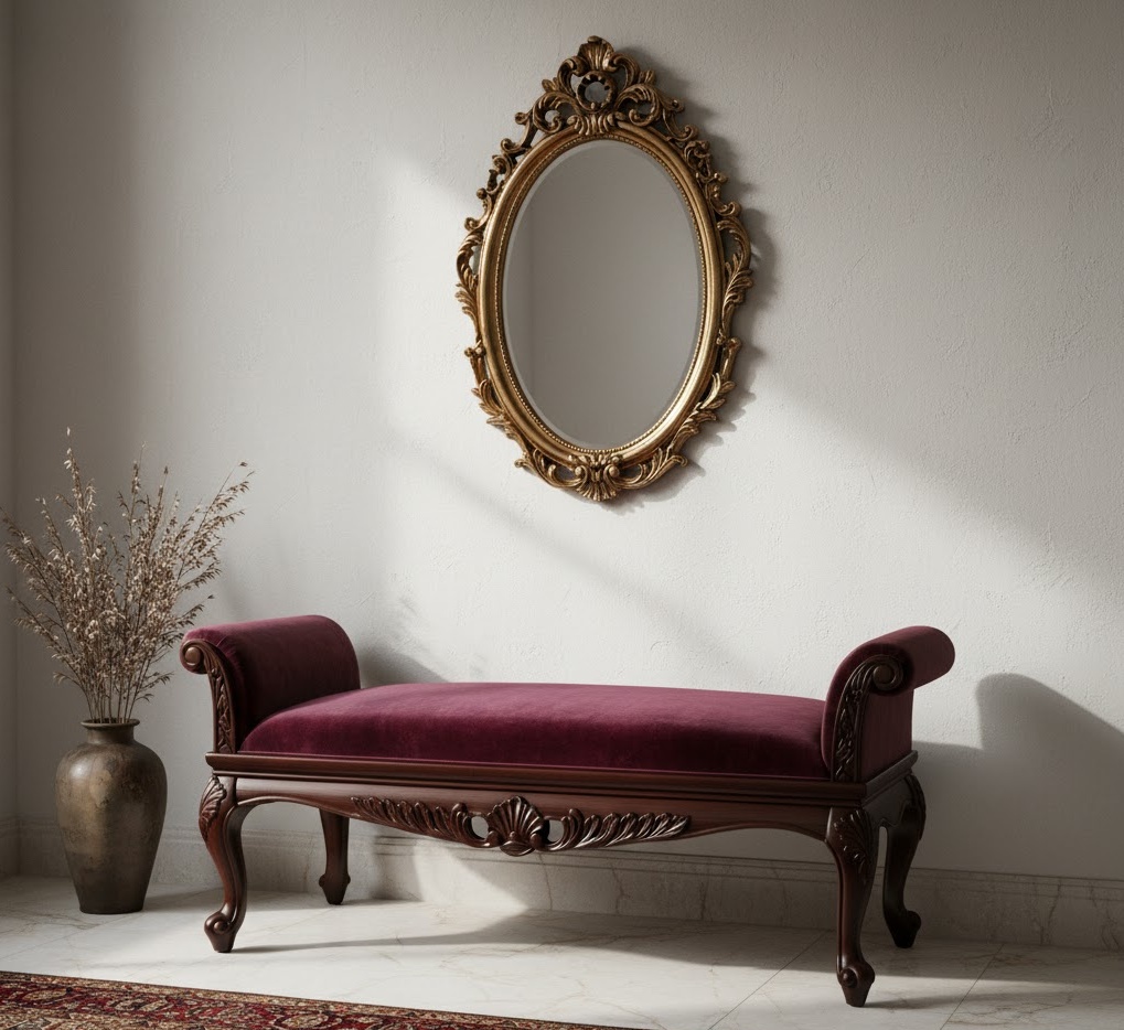 Traditional entryway bench elegance offers a timeless and sophisticated welcome, embodying classic design principles and refined craftsmanship. This style typically features rich, dark woods such as mahogany, cherry, or dark oak, often with ornate carvings, turned legs, or intricate detailing. The colour palette leans towards deep, luxurious tones like burgundy, forest green, or classic navy, often in plush velvet or brocade upholstery. The mood is one of grandeur and established comfort, creating a formal yet inviting entrance. Functionally, these benches might include a hinged lid for discreet storage, blending practicality with an opulent aesthetic. This entryway bench is ideal for homes with a classic, stately decor.