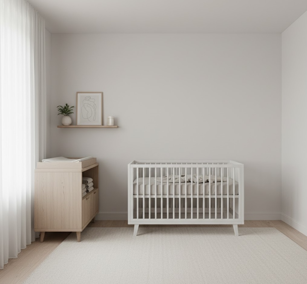 Discover the serene beauty of a Minimalist nursery design, where less is truly more, fostering a calm and uncluttered environment ideal for a baby’s development and a parent’s peace of mind. This sophisticated style prioritises clean lines, functional furniture, and a deliberately sparse aesthetic, ensuring every item serves a purpose without overwhelming the space. The colour scheme typically revolves around a soothing neutral palette of crisp whites, soft greys, and gentle beiges, occasionally accented with subtle pastels or natural wood tones to add warmth without distraction. Materials are chosen for their quality and simplicity, such as sleek painted wood, smooth fabrics, and understated metal accents, contributing to a refined yet approachable feel. Functionality is paramount, with clever storage solutions and versatile pieces that adapt as your child grows, creating a tranquil, spacious, and effortlessly chic nursery.