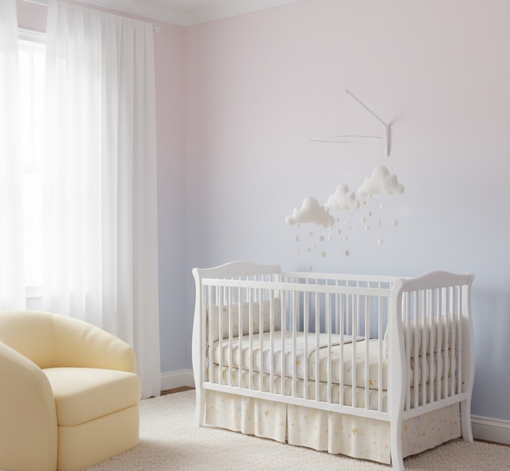 Indulge in the gentle elegance of Pastel Dream nursery themes, crafting a soft, ethereal, and wonderfully calming space that feels like a cloud-filled haven for your little one. This delicate style embraces a palette of muted, tender colours, creating an atmosphere of serenity and peacefulness that is perfect for a baby’s first years. The colour scheme typically features soft pinks, baby blues, mint greens, lavender, and creamy yellows, often blended seamlessly to create a harmonious and soothing visual experience. Materials like plush rugs, sheer curtains, delicate patterns, and soft-touch textiles add layers of comfort and a dreamy texture. Functionality is subtly integrated with comfortable, upholstered furniture and gentle lighting, ensuring a tranquil and comforting environment where your baby can rest, play, and grow surrounded by exquisite softness and delicate beauty.