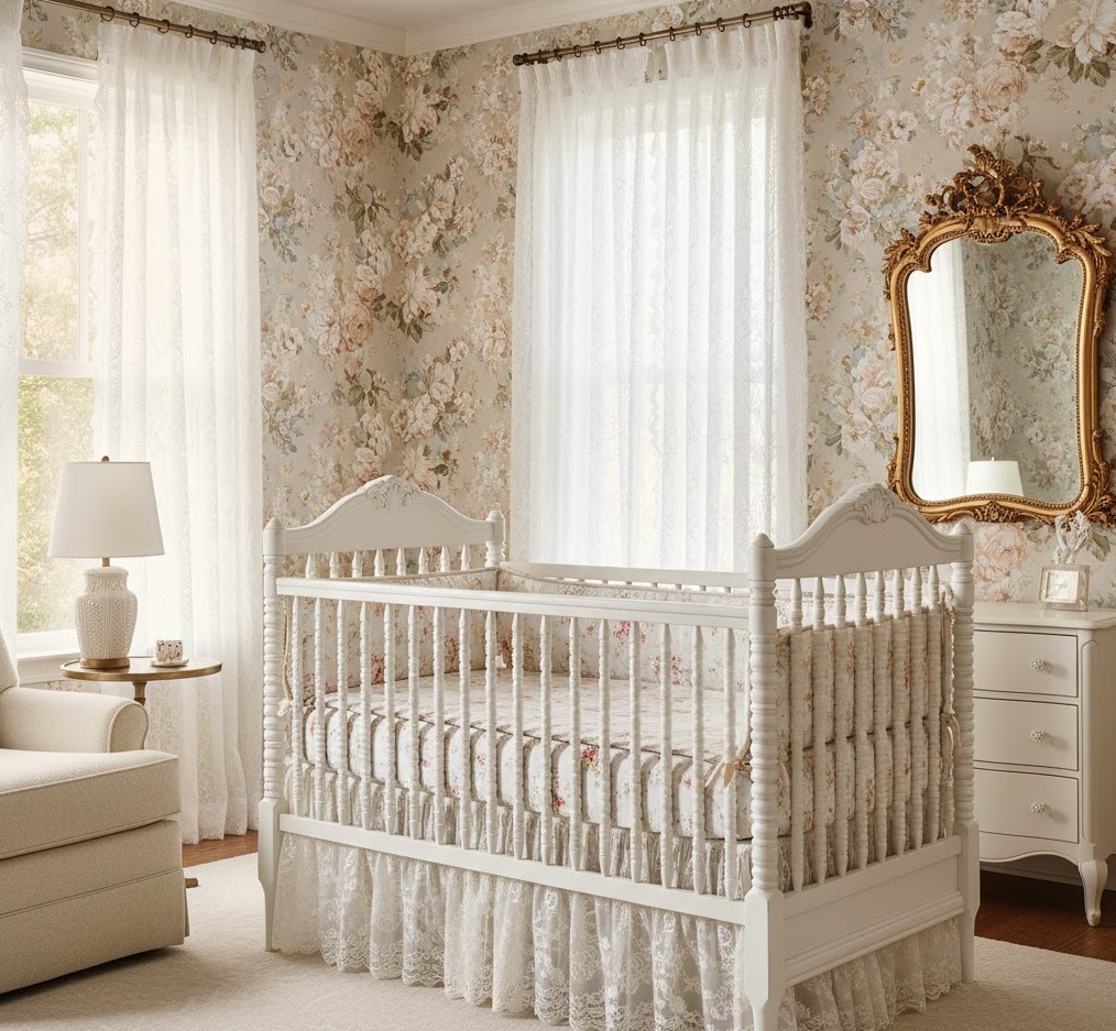Step back in time with a charming Vintage Classic nursery style, curating a space filled with nostalgic elegance and timeless appeal that feels both personal and enduring. This delightful theme often incorporates heirloom pieces, antique-inspired furniture, and delicate details that evoke a sense of history and gentle sophistication. The colour palette typically features soft, muted pastels such as dusty rose, baby blue, mint green, and creamy ivory, creating a gentle and soothing atmosphere. Materials like ornate wooden cribs, lace trimmings, floral wallpapers, and plush velvet accents add layers of texture and a touch of old-world charm. Functionality is blended with beauty, ensuring comfortable seating for parents and practical storage solutions, all while maintaining an aesthetic that feels lovingly curated and wonderfully unique, perfect for a little one’s cherished beginnings.