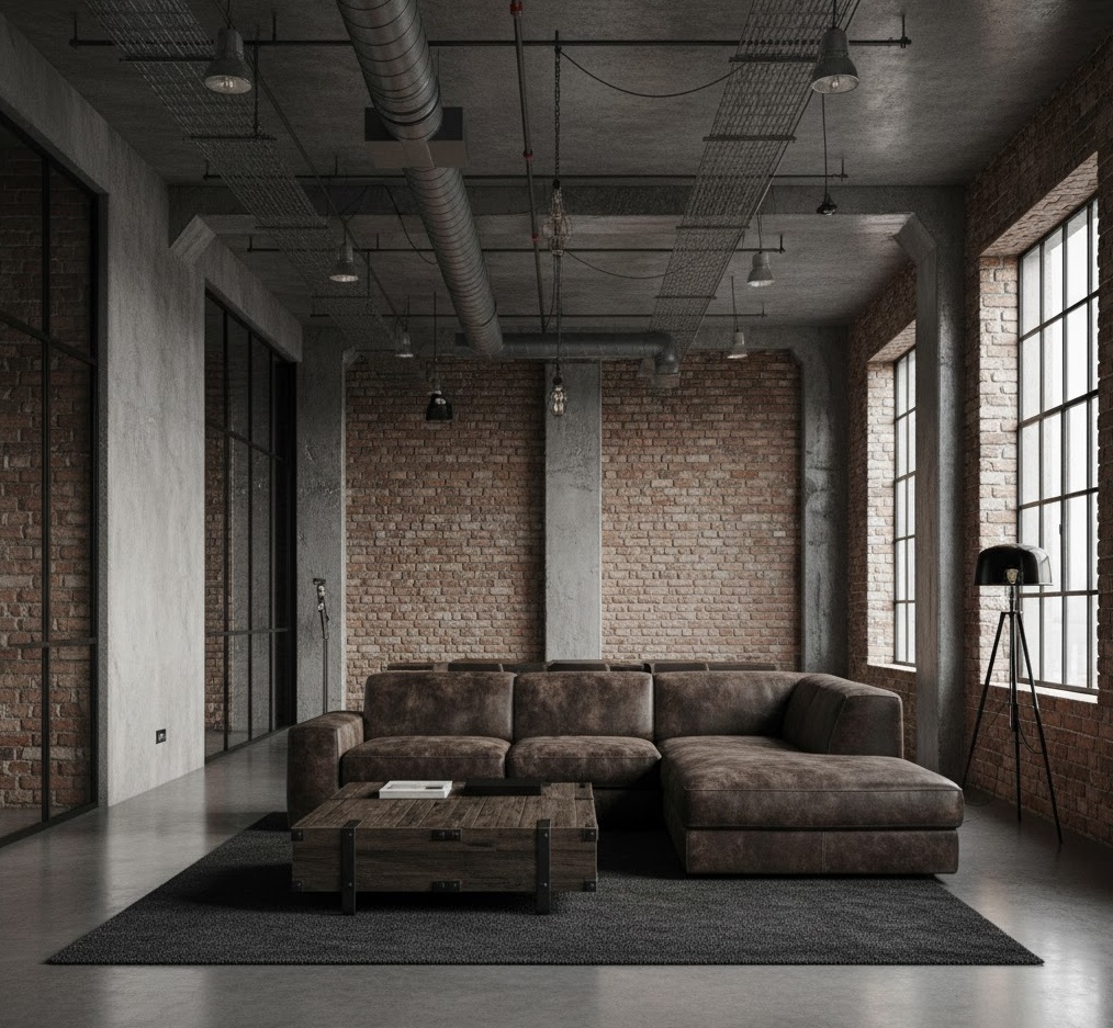 Urban Loft interior finishes celebrate the raw, industrial heritage of city living, transforming former commercial spaces into stylish, contemporary homes. This style is characterised by open-plan layouts, high ceilings, and an emphasis on architectural elements like exposed brick walls, concrete floors, and large, often factory-style, windows. Colour palettes typically lean towards cool neutrals – greys, blacks, and whites – often accented with bold, vibrant colours or metallic tones to add personality. Materials are robust and authentic, including steel, reclaimed wood, and distressed leather, contributing to a rugged yet sophisticated aesthetic. Functionality is key, with versatile furniture and smart storage solutions. The mood is edgy, contemporary, and effortlessly cool, offering a spacious and adaptable living environment that embraces its urban roots.