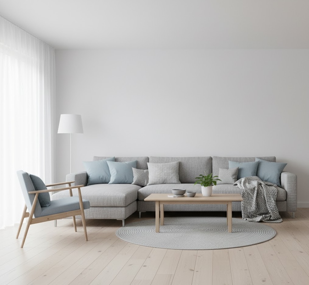 Scandinavian colour palettes are renowned for their ability to create bright, airy, and incredibly cosy interiors, embodying the concept of ‘hygge’. This style predominantly features a light and neutral base, with crisp whites, soft greys, and pale blues forming the foundation, often complemented by natural wood tones in light birch or ash. Finishes are typically matte and understated, focusing on natural textures like wool, linen, and cotton to add warmth without visual clutter. Layouts prioritise functionality and simplicity, ensuring every piece of furniture serves a purpose and contributes to an uncluttered flow. The mood is one of serene calm and inviting comfort, maximising natural light to brighten spaces, making it an ideal choice for creating a peaceful and highly functional home environment.