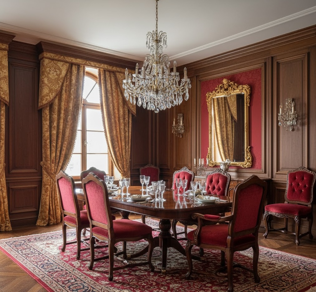 Traditional interior layouts embody classic elegance and timeless sophistication, drawing inspiration from historical European design periods. This style is characterised by symmetry, refined details, and a sense of formality and order. Colour palettes are typically rich and deep, featuring classic combinations like deep reds, forest greens, and golds, often balanced with creams and ivories. Key finishes include dark, polished woods (mahogany, cherry), luxurious fabrics such as silk, velvet, and brocade, and ornate mouldings or carvings. Furniture is often substantial and classically proportioned, arranged in symmetrical layouts to create a balanced and harmonious feel. The mood is one of dignified comfort and enduring beauty, offering a sophisticated and structured living environment that exudes a sense of heritage and refined taste.