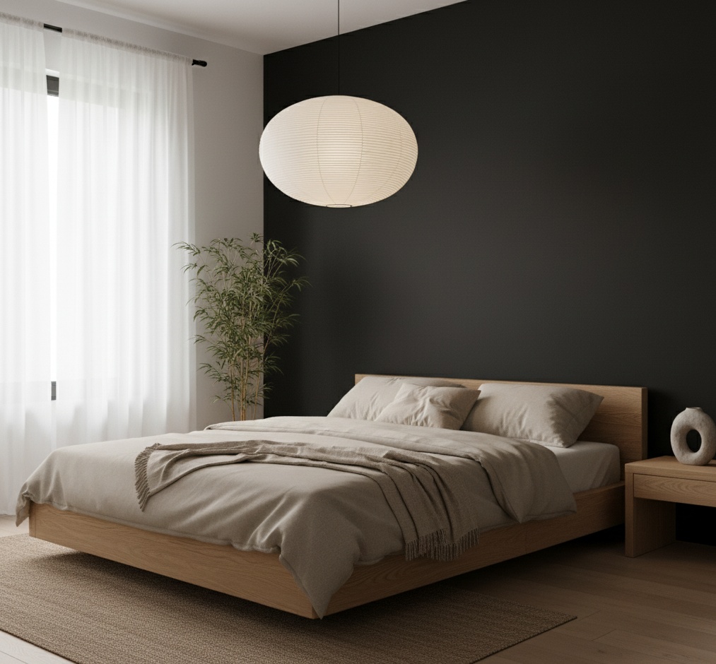Japandi serenity bedroom inspiration is a beautiful hybrid of Scandinavian functionality and Japanese rustic minimalism. This style creates a calming and harmonious atmosphere by focusing on clean lines, bright spaces, and natural materials. The colour palette is muted and tranquil, featuring pale woods, soft greys, beige, and accents of black or a deep, calming colour like indigo. Materials are central to the aesthetic, with a focus on high-quality, sustainable options like bamboo, light oak, paper, and linen. The design philosophy values craftsmanship and imperfection, known as ‘wabi-sabi’, resulting in a space that feels both peaceful and profoundly connected to nature.