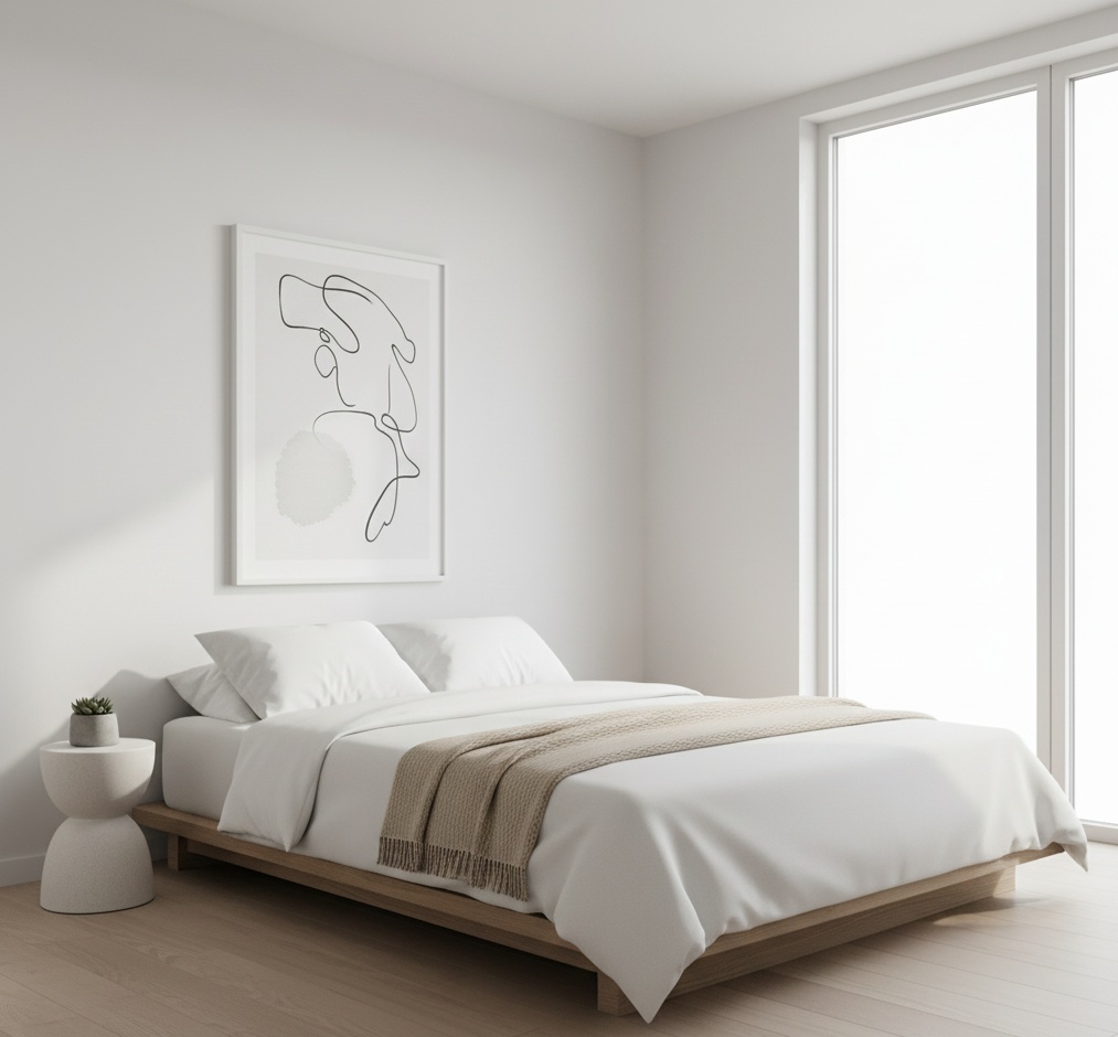 Embracing the philosophy of “less is more,” minimalist bedroom decoration inspiration focuses on creating a serene and uncluttered sanctuary. The colour palette is strictly neutral, favouring shades of white, beige, and soft grey to enhance the sense of space and calm. Materials are chosen for their simplicity and texture, such as light-toned woods, crisp linen bedding, and perhaps a touch of smooth concrete or metal. Functionality is paramount, with clever storage solutions hidden away to maintain clean lines and open surfaces. The overall mood is one of tranquil sophistication, where every single item is intentional and contributes to a peaceful, restorative atmosphere.
