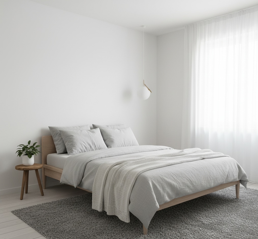 Scandinavian bedroom decoration is rooted in simplicity, functionality, and a deep appreciation for natural light and materials. This style, known as ‘hygge’, creates a feeling of cosiness and contentment through a clean, bright, and airy aesthetic. The colour palette is predominantly light, with white walls, pale grey textiles, and accents of dusty blue or blush pink. Natural wood, especially in light finishes like pine or birch, is a key material for flooring and furniture, complemented by soft textures like wool and sheepskin. The design prioritizes uncluttered spaces and practical, well-crafted furniture, resulting in a bedroom that feels both modern and timelessly comforting.
