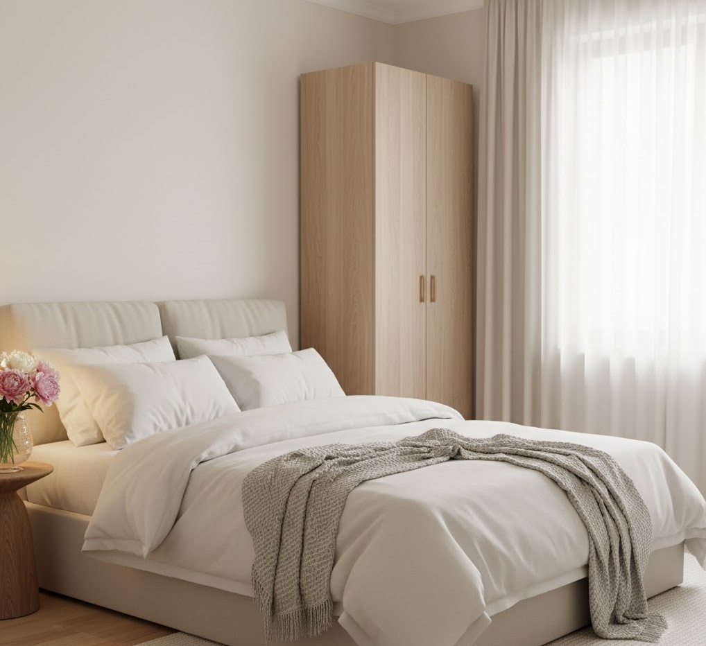 Scandinavian bedroom style champions simplicity, functionality, and a deep connection to nature, creating spaces that are both aesthetically pleasing and incredibly liveable. The hallmark of this design is a bright and airy feel, achieved through a predominantly light colour palette of whites, greys, and pale blues, often complemented by light-toned woods like birch or ash. Materials are natural and tactile, including wool, cotton, linen, and leather, contributing to the ‘hygge’ concept of cosiness and well-being. Furniture is minimalist and highly functional, designed with clean lines and a focus on practicality. The overall mood is one of calm, serenity, and understated elegance, promoting a peaceful and harmonious environment.