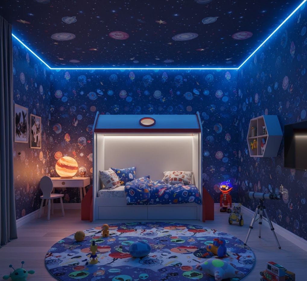 Kids themed bedroom ideas ignite imagination and create a playful, engaging environment tailored to a child’s favourite characters or concepts. The design revolves around a specific theme, such as space, jungle, fairy tale, or superheroes, which dictates the colour palette, decor, and furniture choices. Bright, cheerful colours are often used, creating an energetic and stimulating atmosphere. Materials are selected for safety, durability, and ease of cleaning, including non-toxic paints, robust furniture, and washable fabrics. Functionality prioritises play, learning, and sleep, with features like themed storage, creative play zones, and comfortable sleeping arrangements. The mood is one of joyful wonder and boundless adventure, fostering creativity and fun.