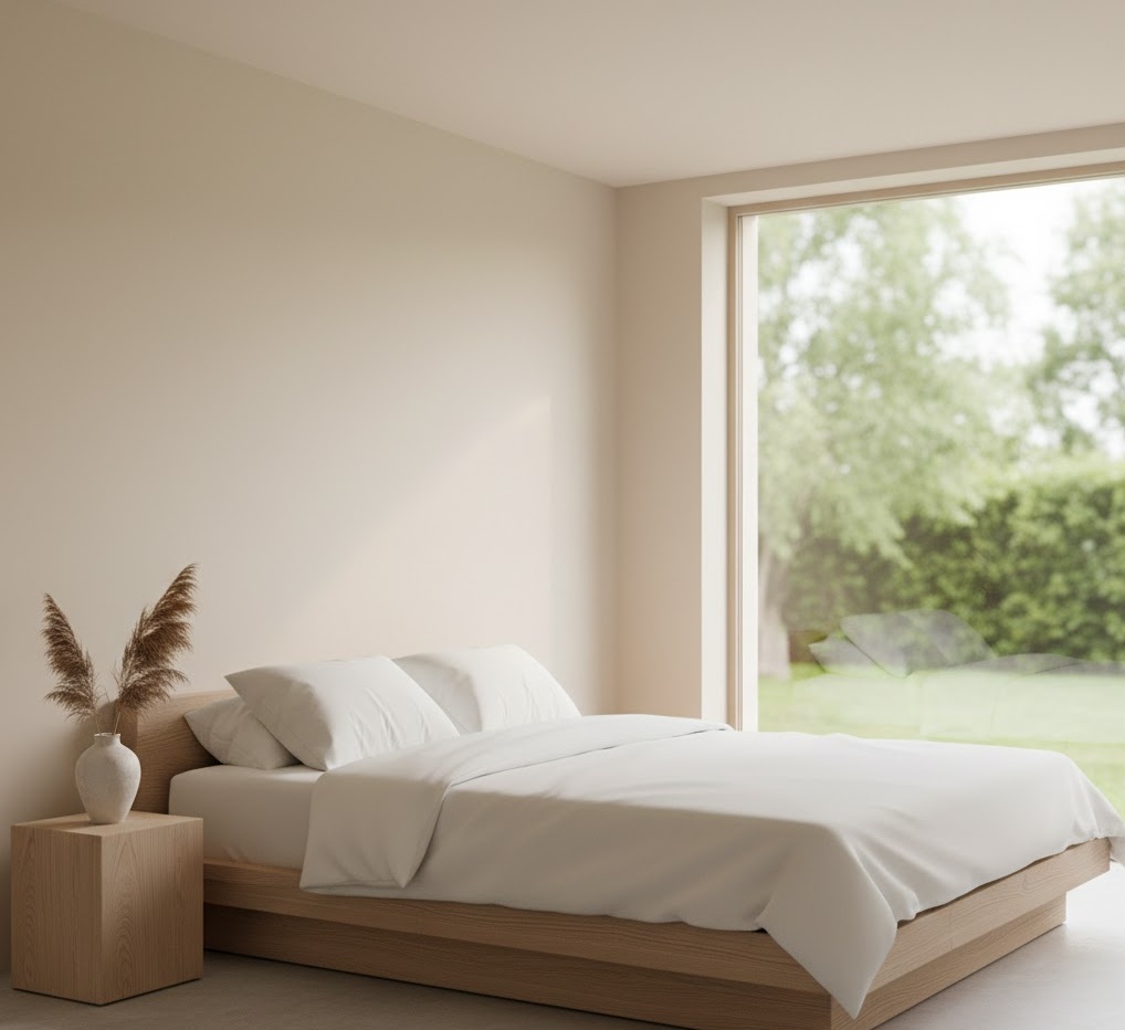 Embracing a minimalist bedroom design focuses on simplicity, functionality, and a clutter-free environment, creating a serene and calming retreat. The aesthetic typically features a neutral colour palette of whites, greys, and soft beiges, allowing natural light to enhance the sense of space and openness. Key materials include light-toned wood, crisp linen, and subtle textures that add depth without overwhelming the eye. Furniture is kept to essential pieces with clean lines, often incorporating clever storage solutions to maintain an uncluttered look. This style prioritises a tranquil mood, promoting relaxation and a clear mind, making it perfect for those seeking a peaceful sanctuary.