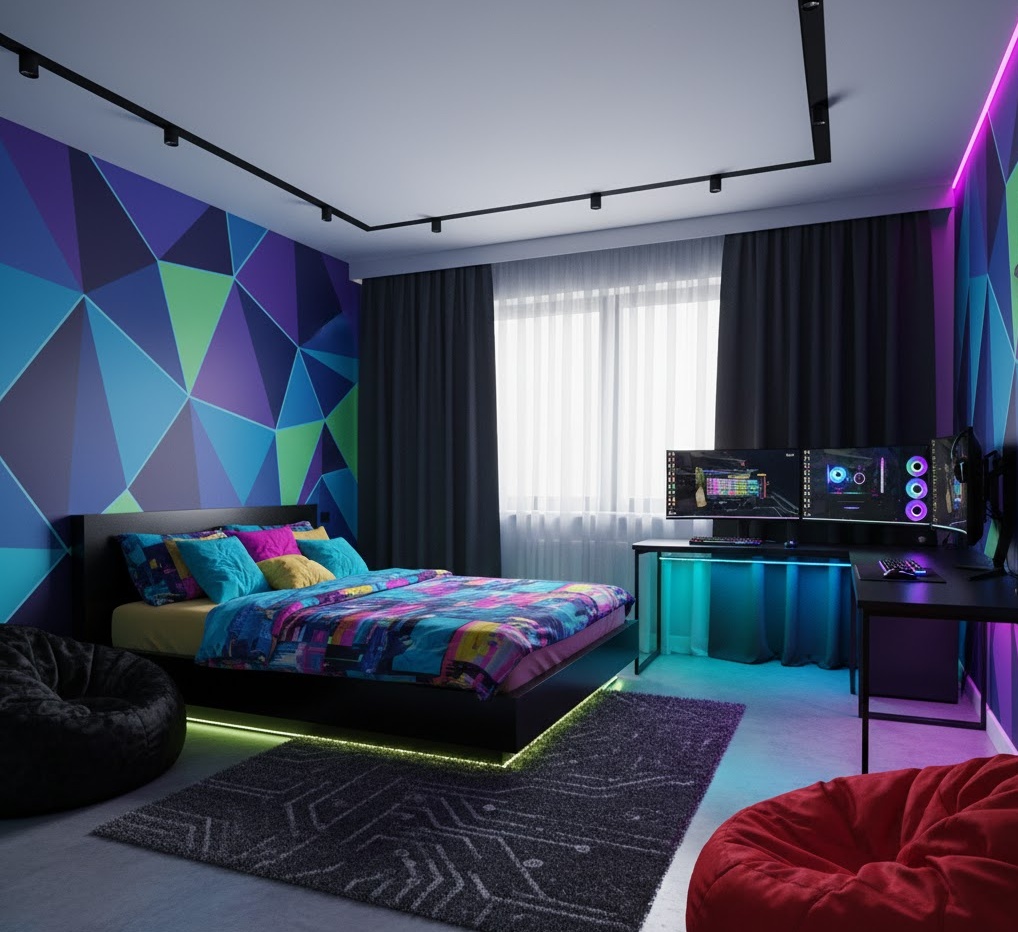 Teen bedroom makeovers focus on creating a dynamic and personalised space that reflects the occupant’s evolving personality, interests, and functional needs. This often involves a vibrant and expressive colour palette, allowing for bold accent walls or playful patterns that resonate with current trends. Materials are chosen for durability and ease of maintenance, such as sturdy furniture, washable fabrics, and versatile storage solutions. Functionality is paramount, integrating dedicated study areas, comfortable lounging spots, and ample space for hobbies or tech gadgets. The mood is one of energetic individuality and creative freedom, providing a comfortable and inspiring environment for growth and self-expression.