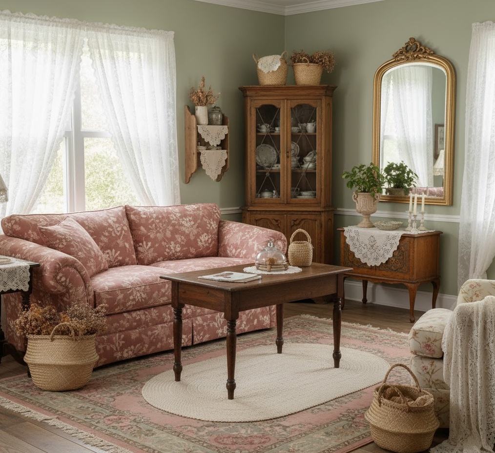 Cottagecore dream aesthetic rooms evoke a romanticised vision of rural life, brimming with whimsical charm and nostalgic comfort. This style embraces natural elements, vintage finds, and a soft, pastel colour palette featuring sage green, dusty rose, and creamy whites. Materials like floral fabrics, lace, natural wood, and woven baskets are prominent, creating a cosy, idyllic atmosphere. Functionality is intertwined with decorative elements, such as antique furniture, handmade crafts, and an abundance of wildflowers, making the space feel like a peaceful countryside retreat. It’s about celebrating simplicity, nature, and a gentle, slower pace of life.