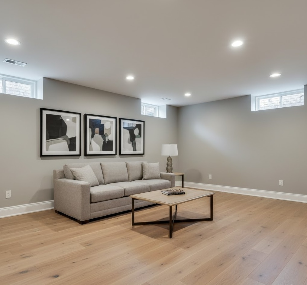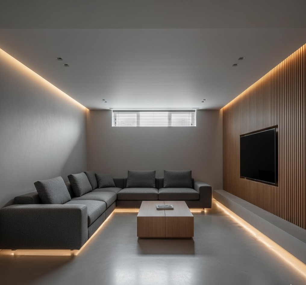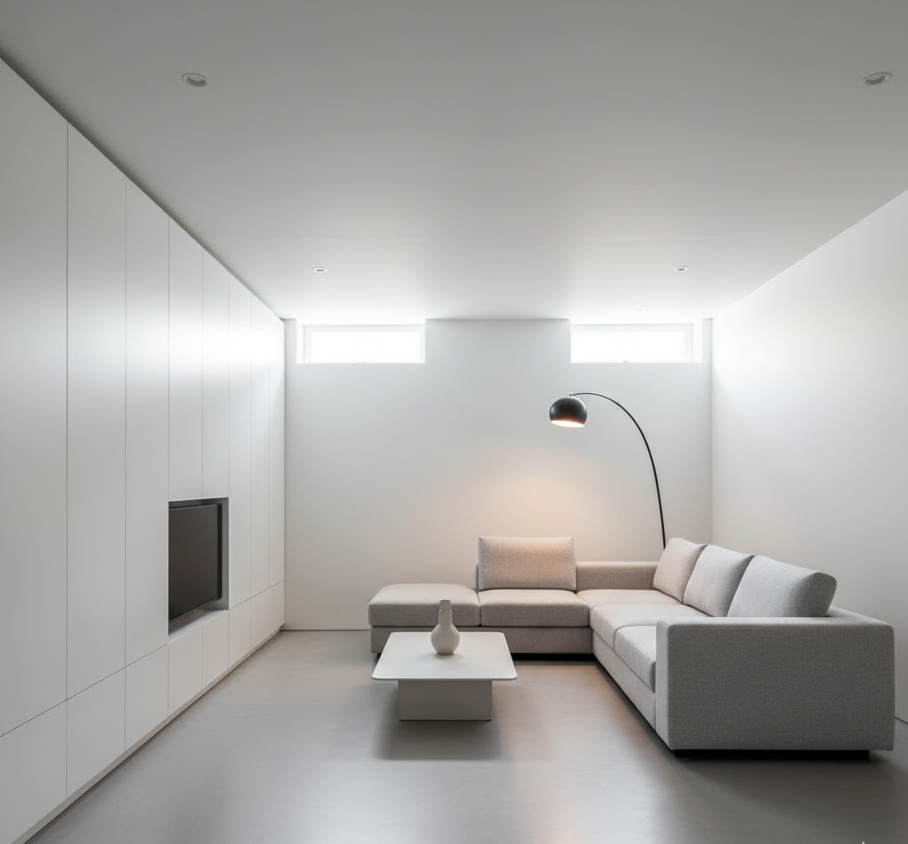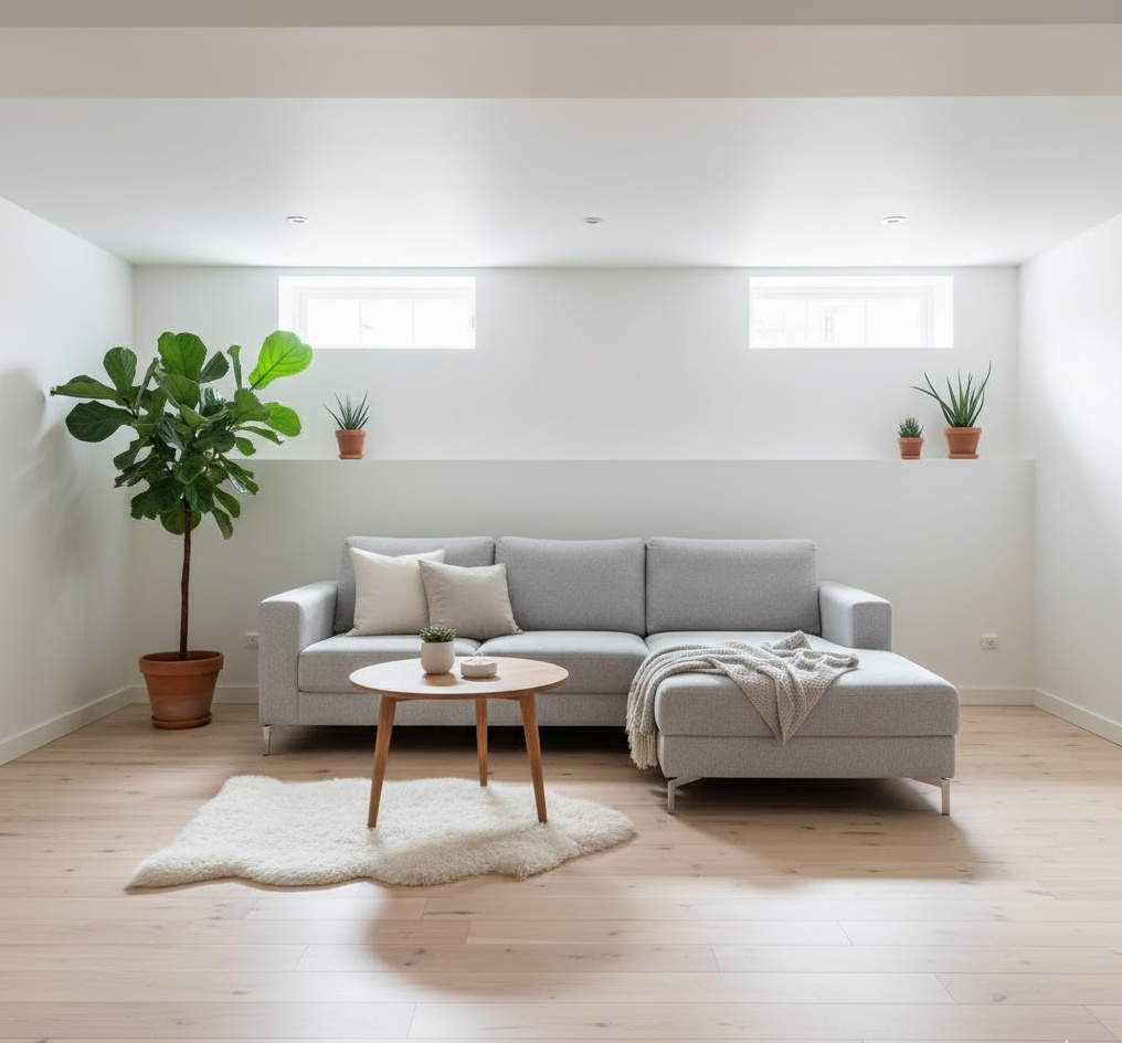 5. Minimalist Basement Living Space