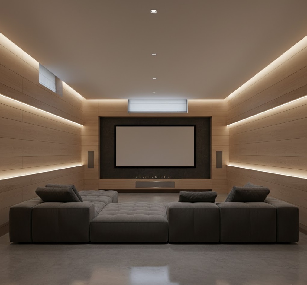 1. Modern Minimalist Basement Cinema
