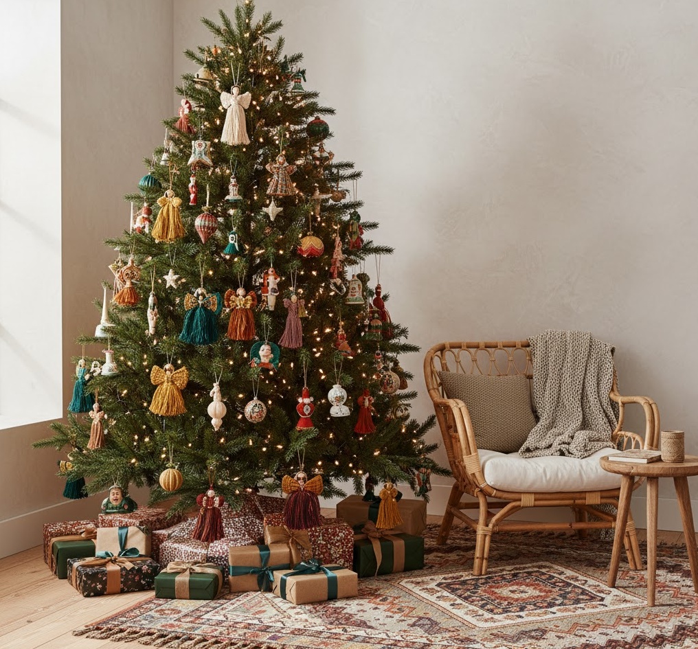 Boho Eclectic Tree Decorating – A stunning example of christmas tree decorating design