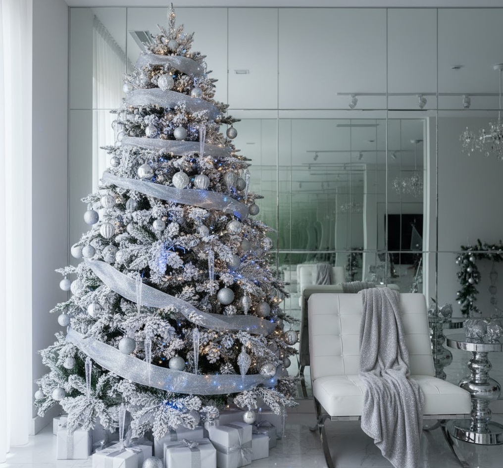 Elegant Silver White Tree Decorating – A stunning example of christmas tree decorating design