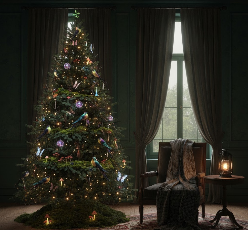 Immerse your home in magic with enchanted forest christmas tree decorating, a style that evokes mystery and wonder. This aesthetic uses deep, rich greens, earthy browns, and mossy tones, often accented with deep purples, blues, or shimmering metallics. Ornaments include faux birds, butterflies, delicate fairy lights, moss, and perhaps some mystical creatures or glowing elements. Materials like velvet, glass, and natural wood create a captivating and dreamlike mood. Functionally, it transports observers to a fantastical realm, creating a truly immersive and imaginative festive experience that feels both ancient and magical.
