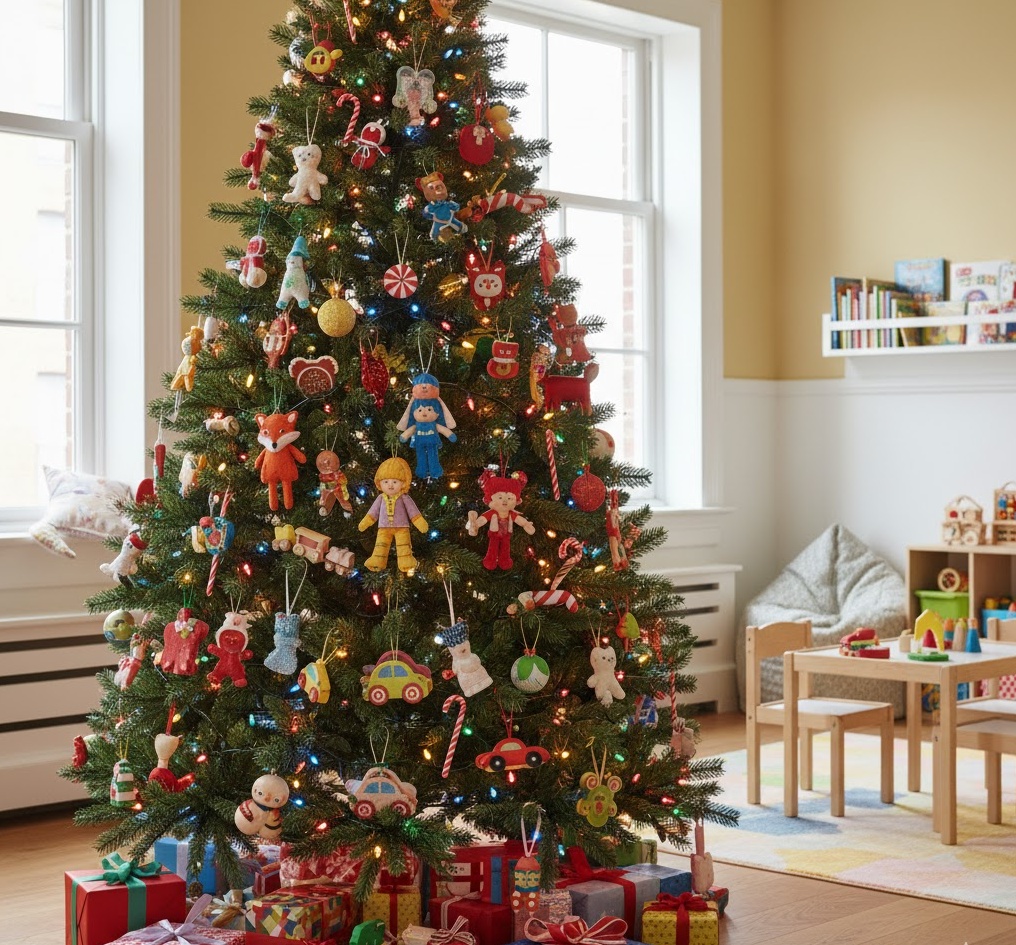 Ignite joy and wonder with playful children’s tree decorating, a vibrant and imaginative style designed to delight little ones. This approach embraces bright, cheerful colours like primary reds, blues, yellows, and greens, often mixed with glitter and sparkle. Ornaments are typically character-based, handmade, or feature whimsical themes like toys, animals, or sweets. Materials are often shatterproof plastic, felt, or soft fabric, ensuring safety and durability. The mood is joyful, exciting, and full of innocent fun, creating a magical focal point for family celebrations. Functionally, it encourages interaction and creates lasting festive memories for children.