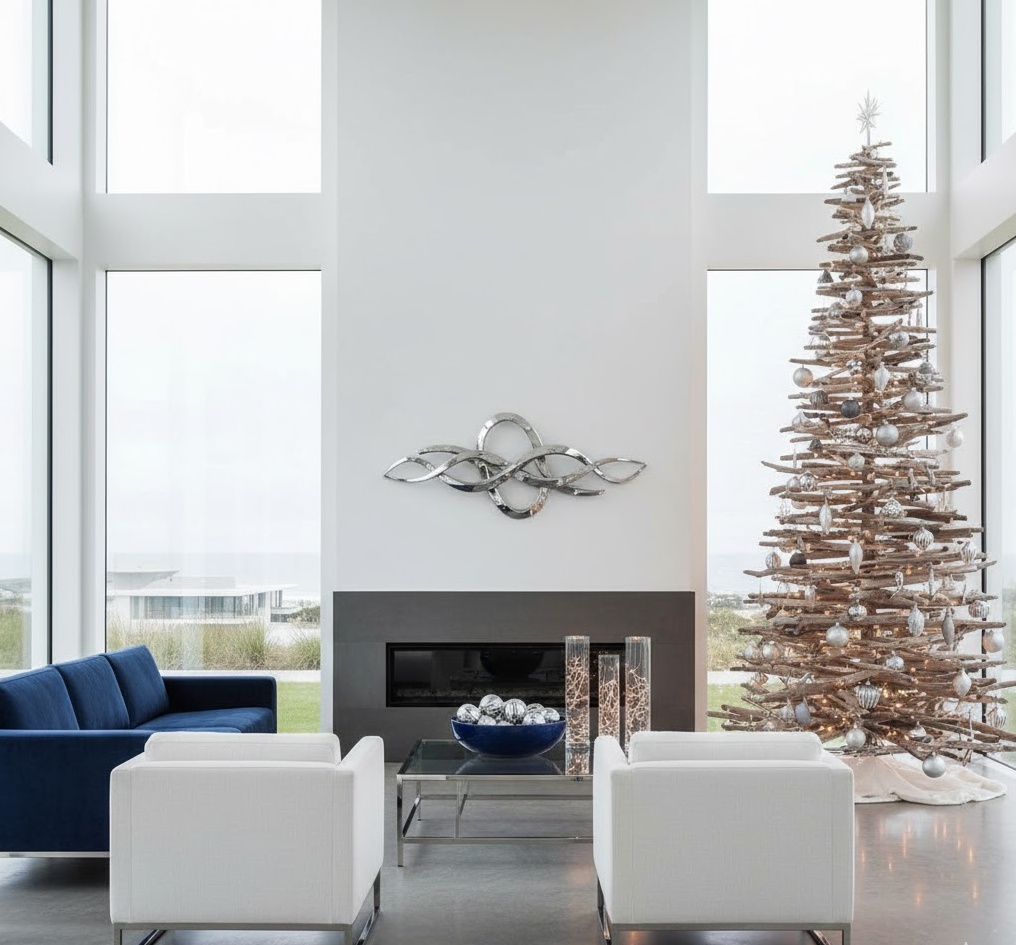 The Modern Coastal Christmas Vibe offers a sleek and sophisticated interpretation of coastal Christmas decorations, blending contemporary design with subtle seaside influences. This style favours a minimalist aesthetic, utilising a clean colour palette of stark whites, charcoal greys, deep indigos, and metallic accents like silver or chrome. Materials are often smooth and refined, including polished concrete, glass, brushed metals, and high-quality, unadorned textiles. Functionally, the focus is on clean lines and uncluttered spaces, with decorations serving as artistic statements rather than overwhelming the room. Think geometric ornaments in sea-inspired hues, abstract driftwood sculptures, and sleek glass vases filled with single sprigs of eucalyptus or minimalist fairy lights. The mood is one of sophisticated calm and contemporary elegance, providing a fresh and stylish take on festive seaside living. This approach ensures a chic, uncluttered holiday atmosphere.