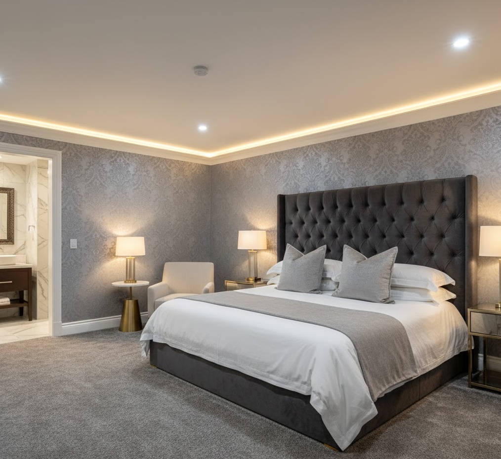 Offer unparalleled hospitality with a luxurious guest suite cool basement, providing a comfortable and private retreat for visitors. This design focuses on creating a welcoming, hotel-like atmosphere with high-end finishes and thoughtful amenities. The colour palette often features sophisticated neutrals like warm greys, creams, and soft blues, accented with rich textures for an inviting feel. Materials such as plush carpeting, elegant wallpaper, high-quality bedding, and stylish furniture are essential for comfort and a refined aesthetic. Functionality includes a comfortable bedroom, a private en-suite bathroom, and perhaps a small sitting area or kitchenette, ensuring guests have everything they need. Think a king-sized bed with premium linens, a well-appointed bathroom, and subtle, warm lighting to transform your cool basement into a truly indulgent and private haven for your guests.