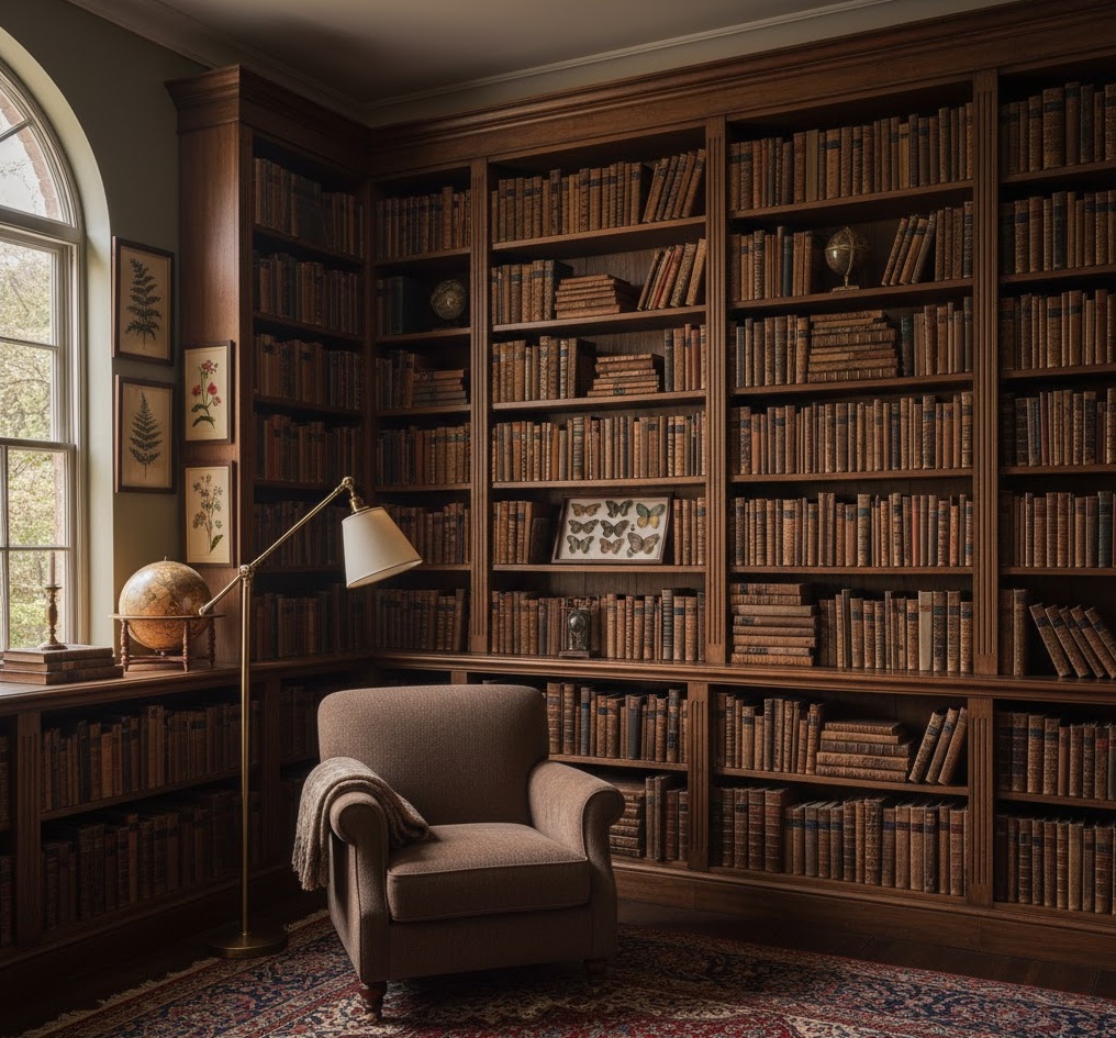 Embrace the charm of a bygone era with a vintage library academia style, transforming any room into a haven for bibliophiles. This aesthetic prioritises floor-to-ceiling bookshelves, often custom-built from dark, aged timber, showcasing not just books but also antique curiosities, framed botanical prints, and busts of literary figures. Colours lean towards muted, earthy tones – think sepia, ochre, and deep browns – creating a warm, inviting backdrop that feels steeped in history. Functionality is achieved through comfortable, deep-seated armchairs upholstered in tweed or velvet, perfect for hours of reading, alongside sturdy side tables for tea and notebooks. The mood is one of nostalgic reverence for knowledge, illuminated by the soft glow of shaded table lamps and the occasional ray of sunlight filtering through heavy, lined drapes. Materials like aged leather, brass, and polished wood are essential, lending an air of authentic, scholarly elegance.