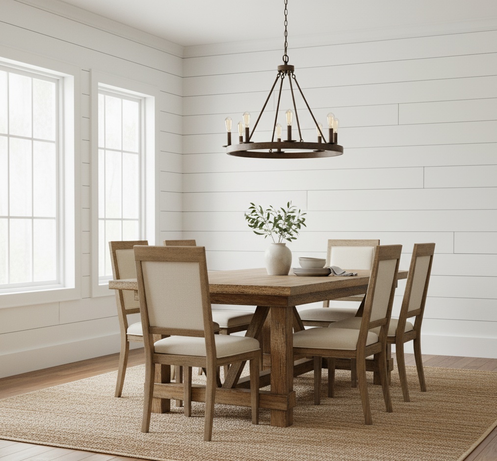 Farmhouse decorating tips focus on creating a warm, rustic, and inviting atmosphere reminiscent of rural living, blending vintage charm with modern comfort. This style is characterised by its emphasis on natural materials, handcrafted items, and a sense of history. Key materials include reclaimed wood, distressed metals, wrought iron, linen, and cotton, often featuring exposed beams or shiplap walls. The colour palette typically consists of warm neutrals like whites, creams, greys, and earthy tones, with occasional muted blues or greens for subtle accents. The mood is cosy, welcoming, and nostalgic, fostering a sense of comfort and family. Functionality is practical and durable, with sturdy furniture and ample storage, making it a beloved choice for decorating ideas that feel authentic and homely.