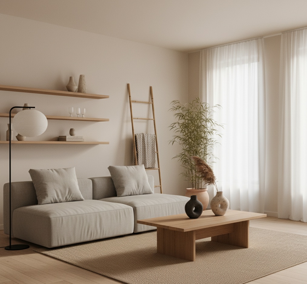 Japandi decorating principles blend the minimalist elegance of Japanese design with the warm functionality of Scandinavian aesthetics, creating a harmonious and serene environment. This hybrid style is characterised by its emphasis on simplicity, natural materials, and craftsmanship. Key materials include light woods, bamboo, paper, ceramics, and natural fibres like linen and cotton, all chosen for their organic textures and sustainable qualities. The colour palette is typically muted and earthy, featuring soft greys, whites, creams, and natural wood tones, with occasional dark accents for contrast. The mood is calm, balanced, and tranquil, promoting mindfulness and a connection to nature. Functionality is paramount, with uncluttered spaces and purposeful objects, making it a thoughtful choice for decorating ideas.