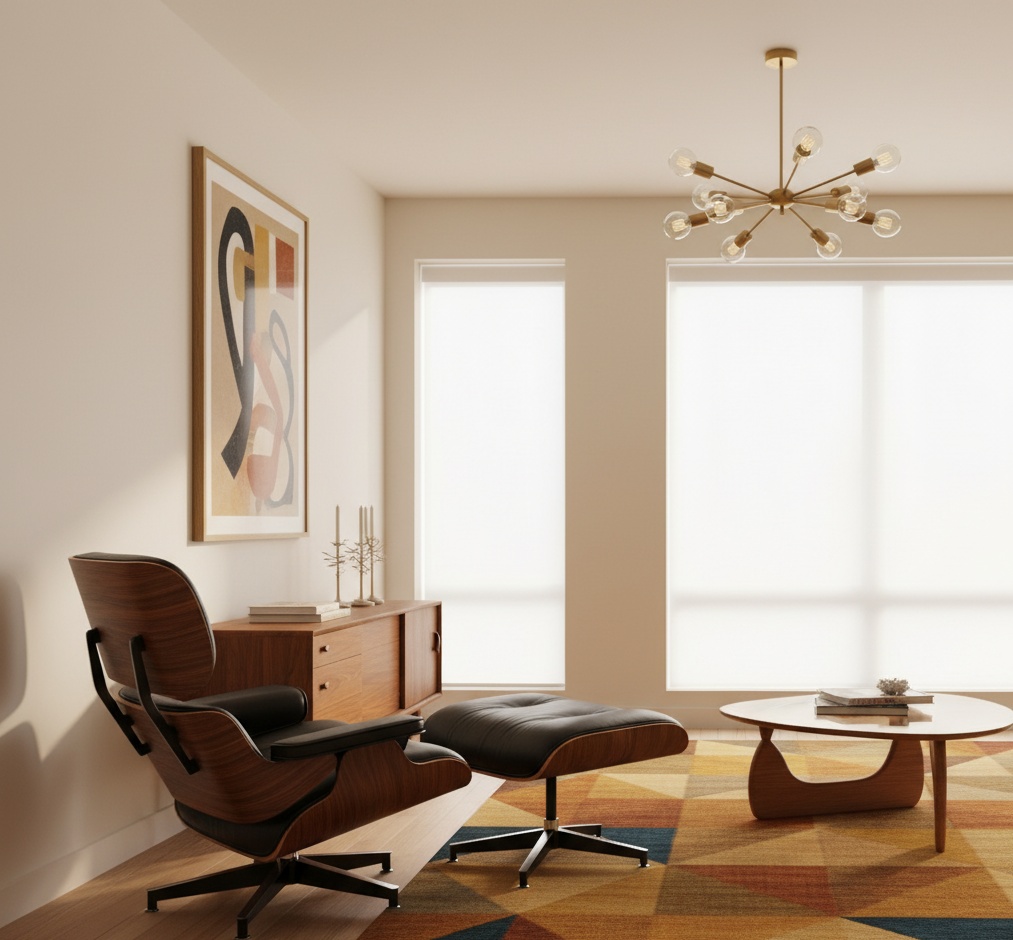 Mid-Century decorating ideas celebrate the iconic design period from the 1940s to the 1960s, known for its organic shapes, functional forms, and innovative use of materials. This style is characterised by its timeless appeal, clean lines, and a blend of natural and man-made elements. Key materials include teak, walnut, plywood, plastic, glass, and metal, often combined in innovative ways. The colour palette typically features earthy tones like avocado green, mustard yellow, burnt orange, and teal, alongside neutrals such as grey and white. The mood is optimistic, stylish, and comfortable, reflecting a post-war era of innovation and domesticity. Functionality is paramount, with furniture designed for both aesthetic appeal and practical everyday use, making it a perennially popular choice for decorating ideas.