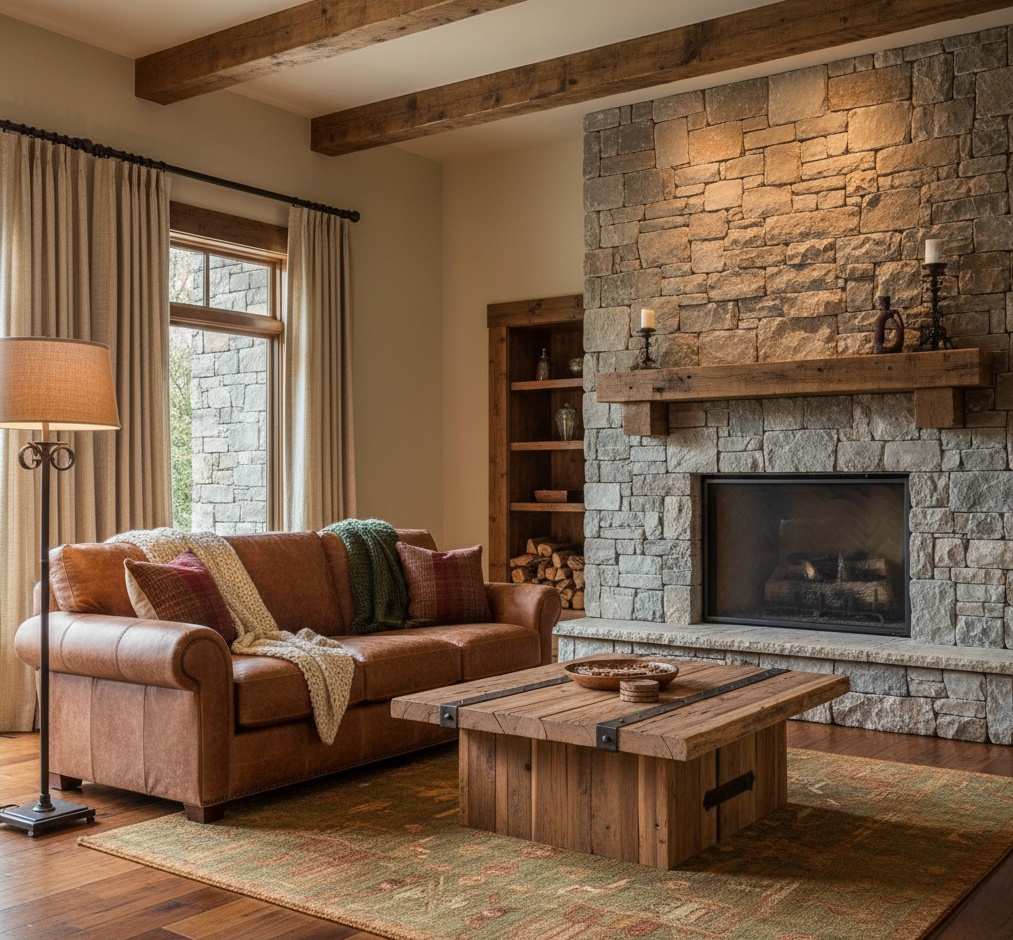 Rustic home decorating embraces the beauty of natural, unrefined elements, creating a warm, earthy, and unpretentious atmosphere. This style is characterised by its connection to nature and a celebration of raw materials. Materials often include rough-hewn wood, stone, wrought iron, natural fibres like wool and linen, and animal hides. The colour palette is typically warm and earthy, featuring browns, greens, greys, and creams, reflecting the natural landscape. The mood is cosy, inviting, and grounded, fostering a sense of peace and connection to the outdoors. Functionality is robust and practical, with sturdy, durable furniture designed for comfort and longevity, making it an ideal choice for decorating ideas that evoke a sense of heritage and simplicity.