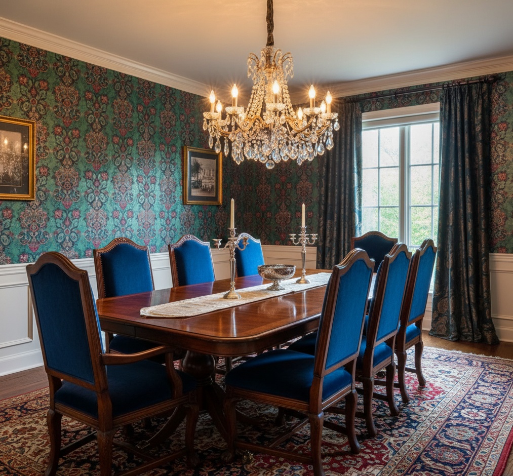 Traditional decorating schemes draw inspiration from classic European design, emphasising elegance, symmetry, and rich detailing. This style is characterised by its timeless appeal, formal arrangements, and a sense of established grandeur. Materials often include dark, polished woods like mahogany and cherry, luxurious fabrics such as silk, velvet, and damask, and ornate metallic accents. The colour palette typically features deep, rich tones like burgundy, forest green, navy blue, and gold, often paired with creamy neutrals. The mood is refined, sophisticated, and comfortable, creating an atmosphere of enduring beauty and heritage. Functionality is balanced with aesthetics, offering comfortable, well-crafted furniture designed for longevity and formal entertaining, making it a distinguished choice for decorating ideas.