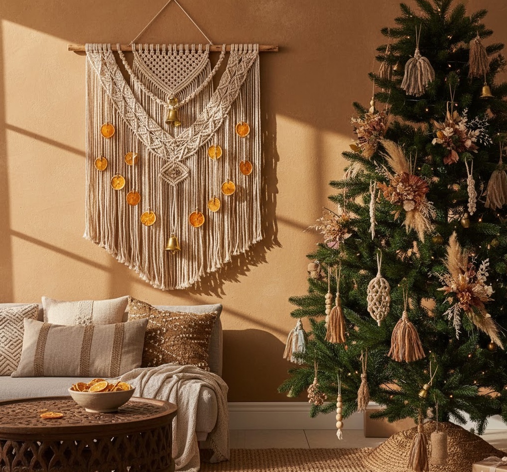 Infuse your home with free-spirited charm using boho chic diy decorations, creating an eclectic and vibrant festive interior. This expressive style celebrates global influences and handcrafted artistry, utilising materials like macrame, tassels, dried flowers, feathers, and repurposed fabrics. Colours are a rich tapestry of earthy tones – terracotta, mustard, olive green – combined with jewel-toned accents and natural creams, fostering a warm, inviting, and artistic atmosphere. Functionality often comes in the form of decorative wall hangings or repurposed textiles that add texture and visual interest, transforming everyday items into festive statements. The overall mood is one of relaxed creativity and joyful individuality, perfect for those who love to blend diverse elements and create a truly unique, bohemian Christmas experience that feels both personal and wonderfully unconventional.