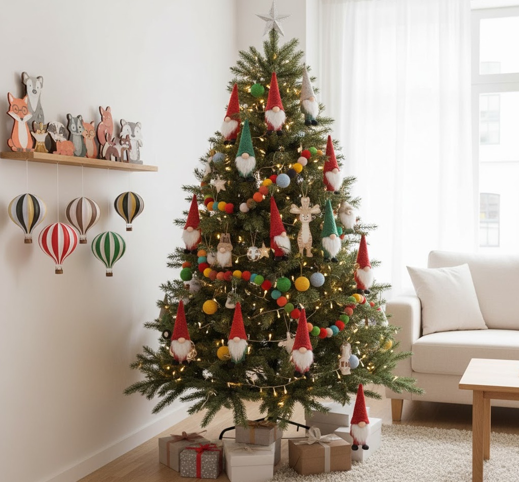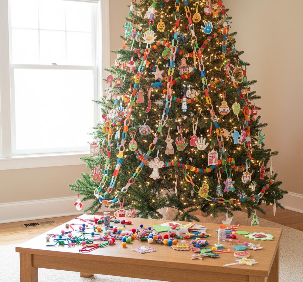 Engage the whole family with kid friendly diy decorations, creating a joyful and interactive festive experience for everyone. This playful style prioritises safety, ease of creation, and vibrant fun, utilising materials like colourful paper, felt, pipe cleaners, pom-poms, and non-toxic paints. Colours are a bright and cheerful spectrum, encouraging creativity and excitement, creating an energetic, happy, and wonderfully inclusive atmosphere. Functionality is often about hands-on involvement, with decorations like paper chains, handprint ornaments, or painted salt dough figures becoming cherished family keepsakes. The overall mood is one of pure delight and shared memories, transforming your home into a vibrant hub of festive activity, perfect for a Christmas filled with laughter, creativity, and the innocent magic of childhood.
