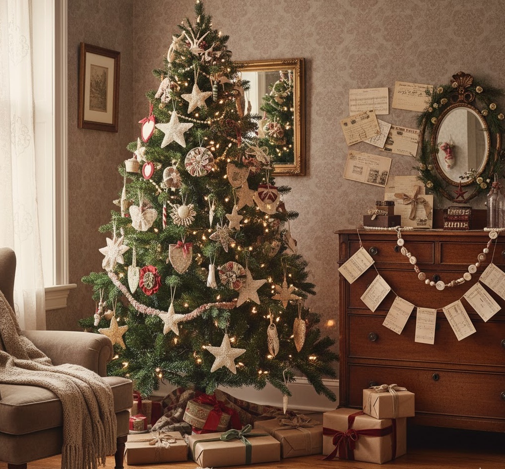Step back in time with vintage diy christmas crafts, infusing your home with nostalgic charm and a sense of cherished history. This delightful style draws inspiration from past eras, utilising materials like old lace, antique buttons, faded fabrics, and repurposed ephemera such as sheet music or old postcards. Colours often feature muted pastels, faded reds and greens, and creamy off-whites, creating a soft, romantic, and wonderfully sentimental atmosphere. Functionality is often about giving new life to old items, such as transforming vintage brooches into unique ornaments or crafting garlands from old fabric scraps. The overall mood is one of gentle nostalgia and heartfelt sentimentality, transforming your space into a cosy haven filled with stories and memories, perfect for a Christmas that feels truly timeless and personal.