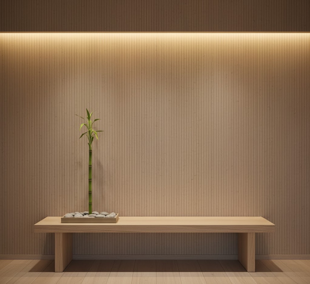 A Zen-inspired small entryway promotes a sense of calm, peace, and harmony, creating a serene transition into your home. Natural materials like light wood, bamboo, and smooth stones are central to this aesthetic. A muted, earthy colour palette of soft greens, greys, and creams enhances the tranquil mood. Minimalist decor, such as a single potted bamboo plant or a small pebble tray, adds subtle natural elements without clutter. Functionality is simple and unobtrusive, perhaps a low wooden bench for contemplation or a few discreet wall hooks. The overall effect is one of quiet elegance and mindful simplicity.