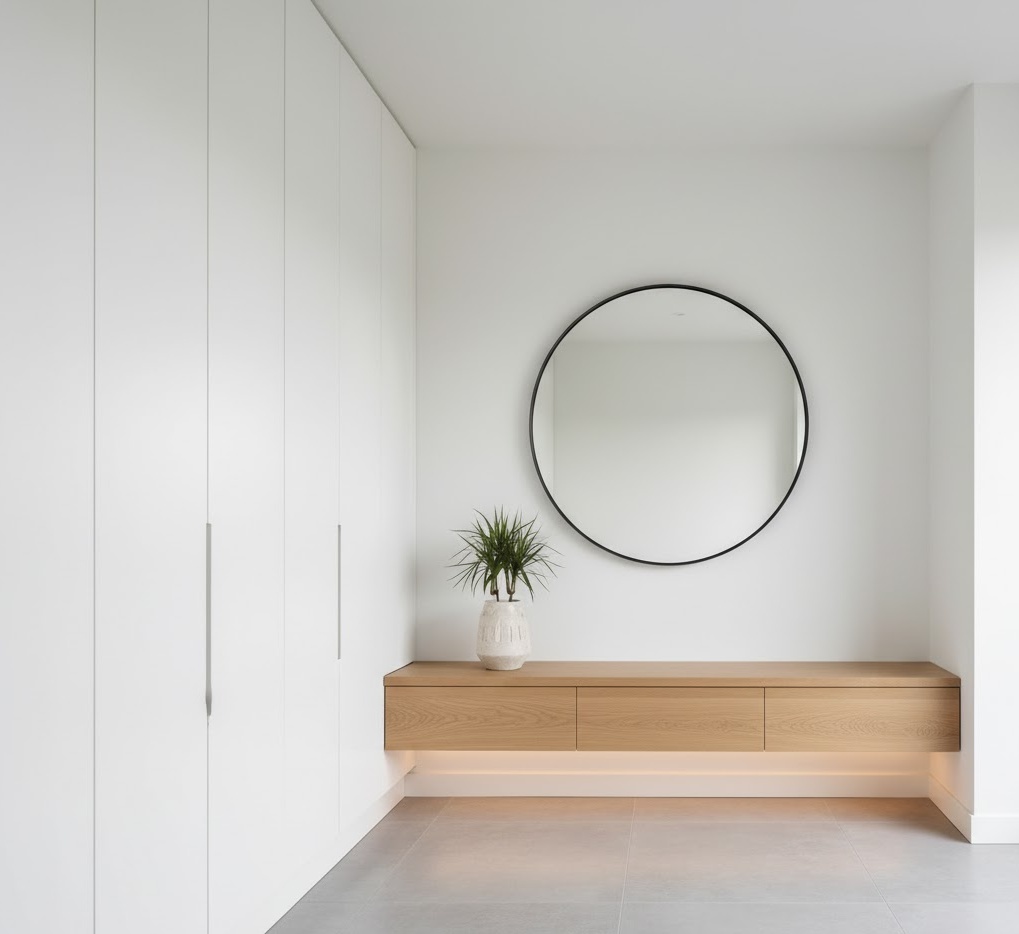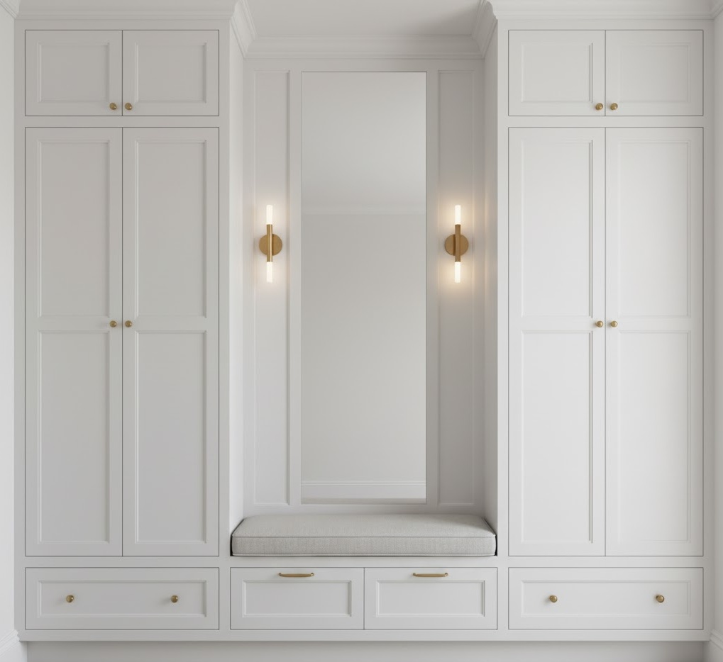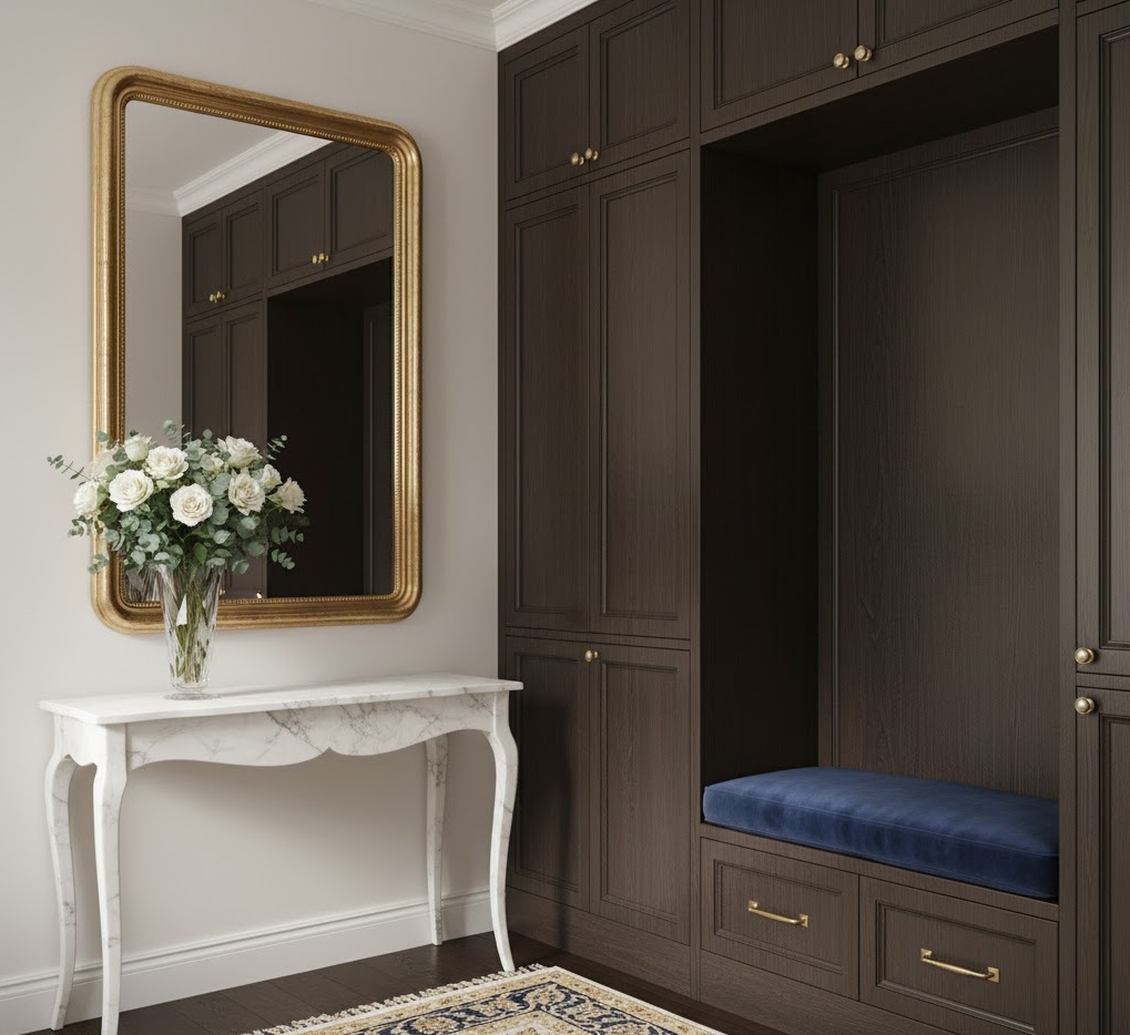 Bespoke entryway solutions are custom-designed to perfectly fit your space, style, and specific storage needs, offering unparalleled functionality and aesthetic harmony. This approach allows for unique configurations, tailored dimensions, and a choice of materials and finishes that precisely match your home’s interior. From integrated seating and hidden compartments to custom shelving and display areas, every element is crafted for you. The mood is one of ultimate luxury and personalised efficiency, ensuring your entryway is not only perfectly organised but also a true reflection of your taste. It’s the ideal choice for a truly unique and high-end entrance.