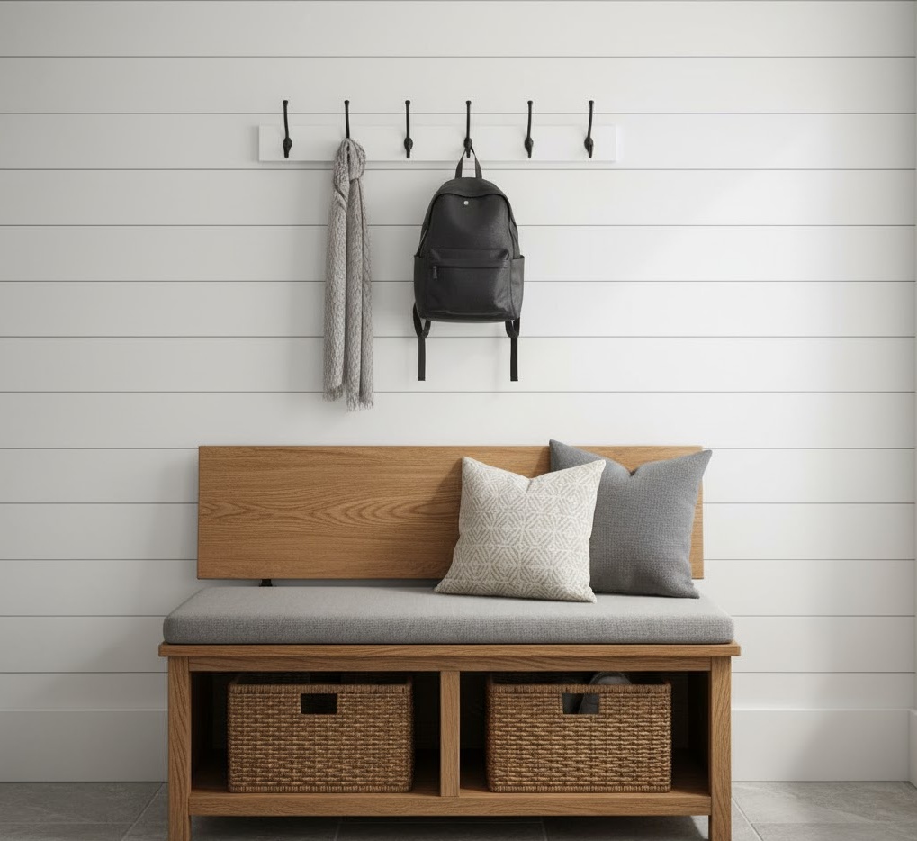 Small space entryway storage is all about clever, compact solutions that maximise every inch without overwhelming the area. This style prioritises multi-functional pieces, vertical storage, and slimline designs to maintain an open and airy feel. Floating shelves, narrow console tables, wall-mounted organisers, and benches with hidden compartments are common. Materials are often light-coloured woods or white finishes to enhance brightness, creating a functional yet uncluttered mood. It’s about smart design that makes a big impact in a tiny footprint, ensuring a tidy and welcoming entrance even in the most compact homes.