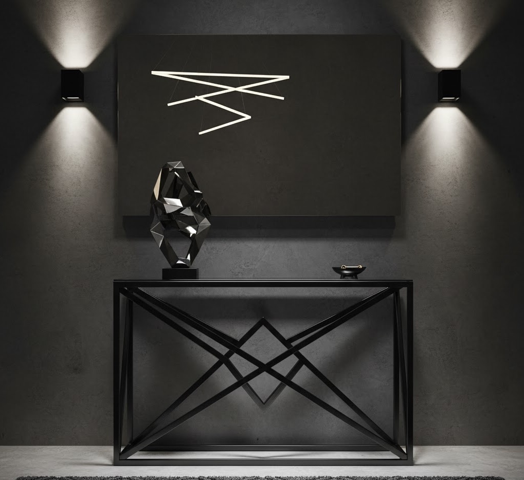 A geometric entryway table makes a striking contemporary statement, introducing dynamic shapes and modern artistry to your home’s entrance. This bold style is characterised by its innovative use of lines, angles, and forms, creating a visually captivating and architectural focal point. Typically crafted from sleek metals, glass, or engineered wood, these tables often feature intricate bases, interlocking shapes, or asymmetrical designs that challenge traditional forms. The colour palette can range from monochromatic blacks and whites to vibrant primary colours, depending on the desired impact, creating an energetic and modern mood. Functionality is often integrated into the design, with shelves or surfaces forming part of the geometric structure, offering both display and utility. This entryway table idea is perfect for those who appreciate avant-garde design and a truly modern, artistic first impression.