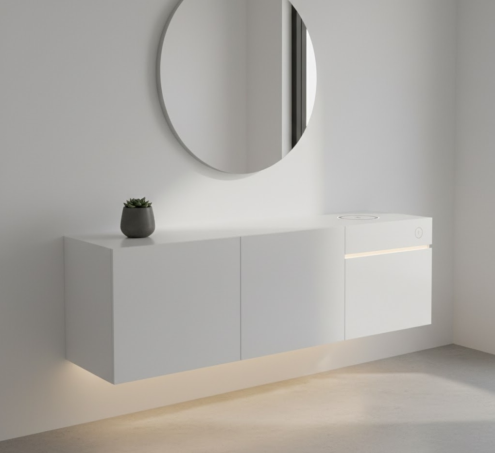 A smart tech entryway table seamlessly integrates modern technology with elegant design, offering a futuristic and highly functional welcome to your connected home. This innovative style prioritises convenience and efficiency, ensuring your entrance is not just stylish but also incredibly intelligent. Typically crafted from sleek, contemporary materials like polished metal, tempered glass, or high-gloss composites, these tables often feature integrated wireless charging pads, discreet USB ports, or even ambient smart lighting. The colour palette is usually minimalist, featuring whites, greys, and blacks, creating a clean, sophisticated, and forward-thinking mood. Functionality is paramount, providing a central hub for charging devices, managing smart home routines, and keeping essentials organised with a modern flair. This entryway table idea is perfect for tech-savvy individuals who desire a cutting-edge and effortlessly organised first impression.