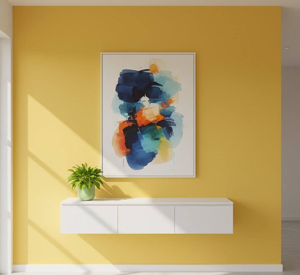 A vibrant colour entryway wall injects energy and personality into the home’s entrance, creating an immediate sense of joy and welcome. This design features a bold, saturated hue on one or more walls, such as a sunny yellow, a lively coral, or an electric blue. Materials are often simple, allowing the colour to dominate, perhaps complemented by neutral furnishings or contrasting accents. The colour palette is centred around the chosen vibrant shade, balanced by whites, greys, or natural wood tones to prevent overwhelming the space. Functionality can be straightforward, with the colour providing the main decorative element. This entryway wall idea creates an uplifting, playful, and memorable mood.