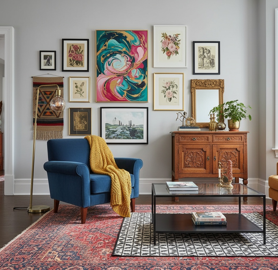 Unleash your creativity with eclectic interior design, a style that masterfully blends different periods, textures, and styles into a cohesive and unique whole. This aesthetic is all about personal expression and curated individuality, creating spaces that tell a story. There are no strict rules for materials, but often a mix of vintage and modern, rough and smooth, is seen, such as antique wood alongside sleek metal or velvet with linen. The colour palette can be diverse, but typically a unifying thread, like a dominant neutral or a consistent accent colour, ties everything together. Functionality is about creating a comfortable, lived-in space that reflects the homeowner’s personality. The mood is vibrant, interesting, and deeply personal, making eclectic home decor and design ideas perfect for those who dare to be different.