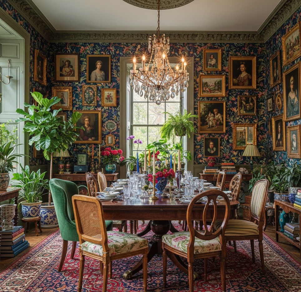 Unleash your boldest self with maximalist home decor, a vibrant and expressive style that celebrates abundance, rich patterns, and a “more is more” philosophy. This aesthetic is characterised by its layered textures, diverse collections, and a fearless use of colour and pattern, creating a visually stimulating and deeply personal space. Key materials include velvet, silk, ornate wood, intricate wallpapers, and a mix of antique and modern pieces, all contributing to a sense of curated chaos. The colour palette is often rich and varied, featuring jewel tones, bold primaries, and clashing patterns, unified by a strong personality. Functionality is about surrounding oneself with beloved objects and creating a narrative. The mood is joyful, energetic, and utterly unique, making maximalist home decor and design ideas perfect for those who embrace individuality.